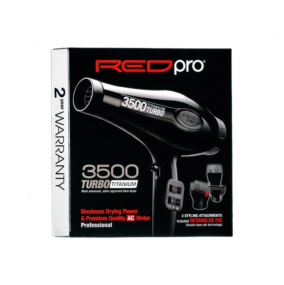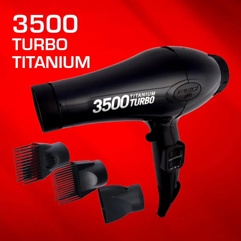 Red PRO 3500 Titanium Turbo Hair Dryer 3 Styling Attachments