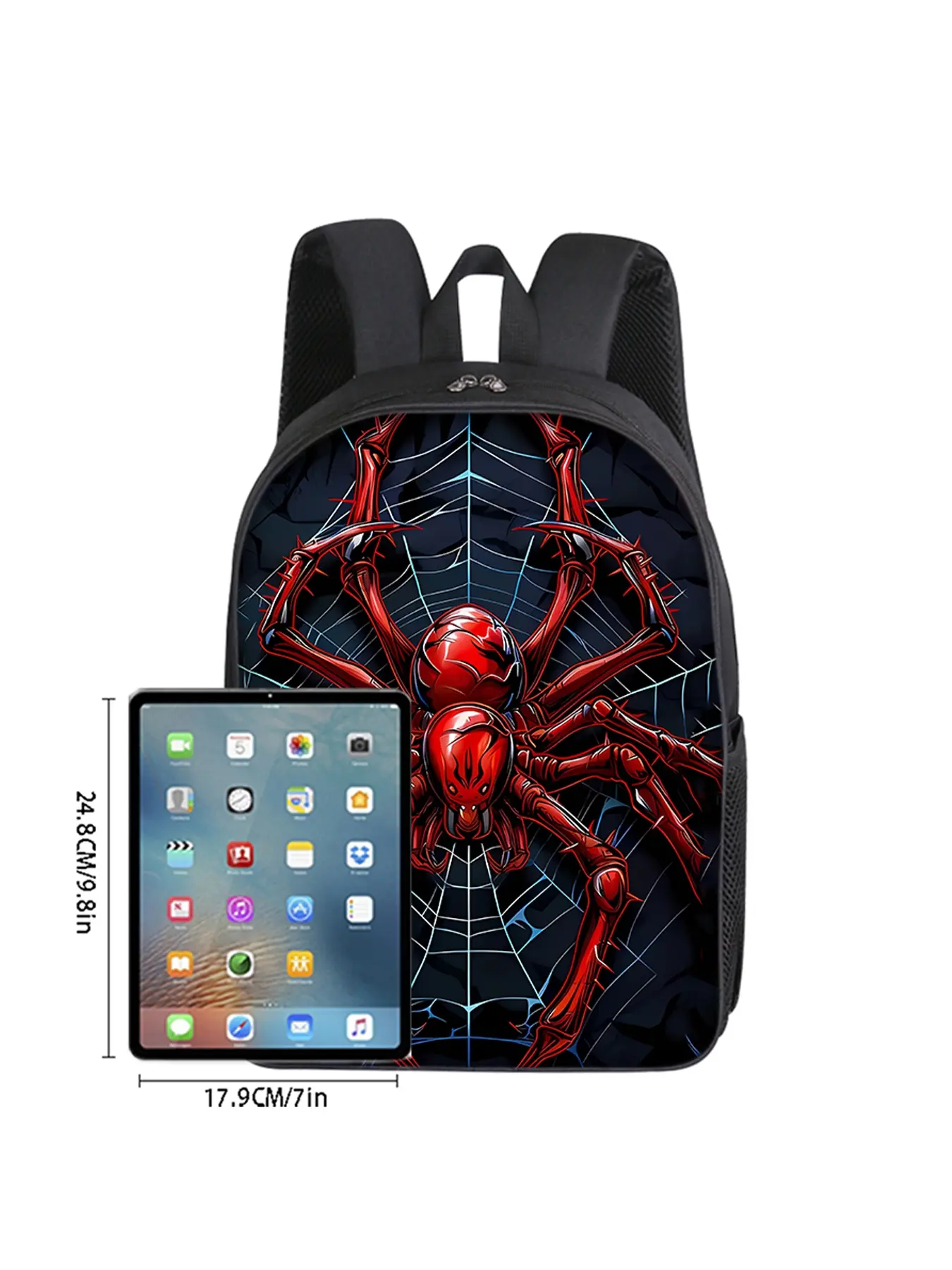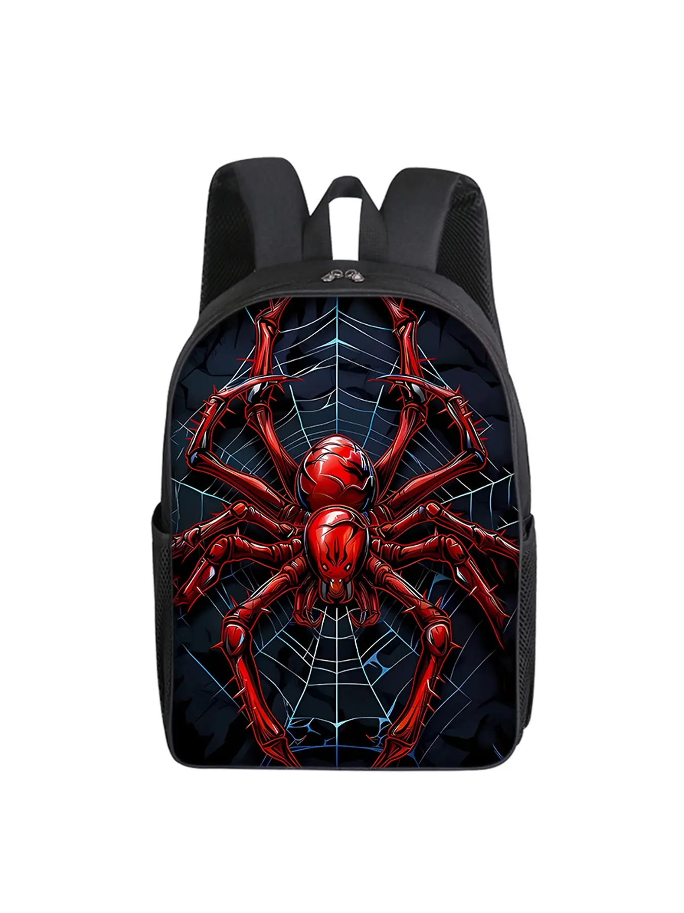 Red spider pattern printed 16-inch single-layer backpack