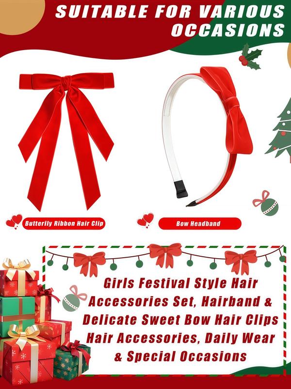 【Two-Piece Set】: Includes both a headband and a crocodile clip, providing versatile options for different hairstyles during the holidays.