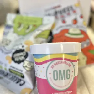 Our Ooey Marshmallow Goodness is our version of marshmallow creme -- a sticky, sweet spreadable marshmallow treat that is perfect for dips, dunks, and desserts of all kind. We love to keep our pints in the fridge or freezer (fluff ice cream anyone?) but you can keep them at room temp too!