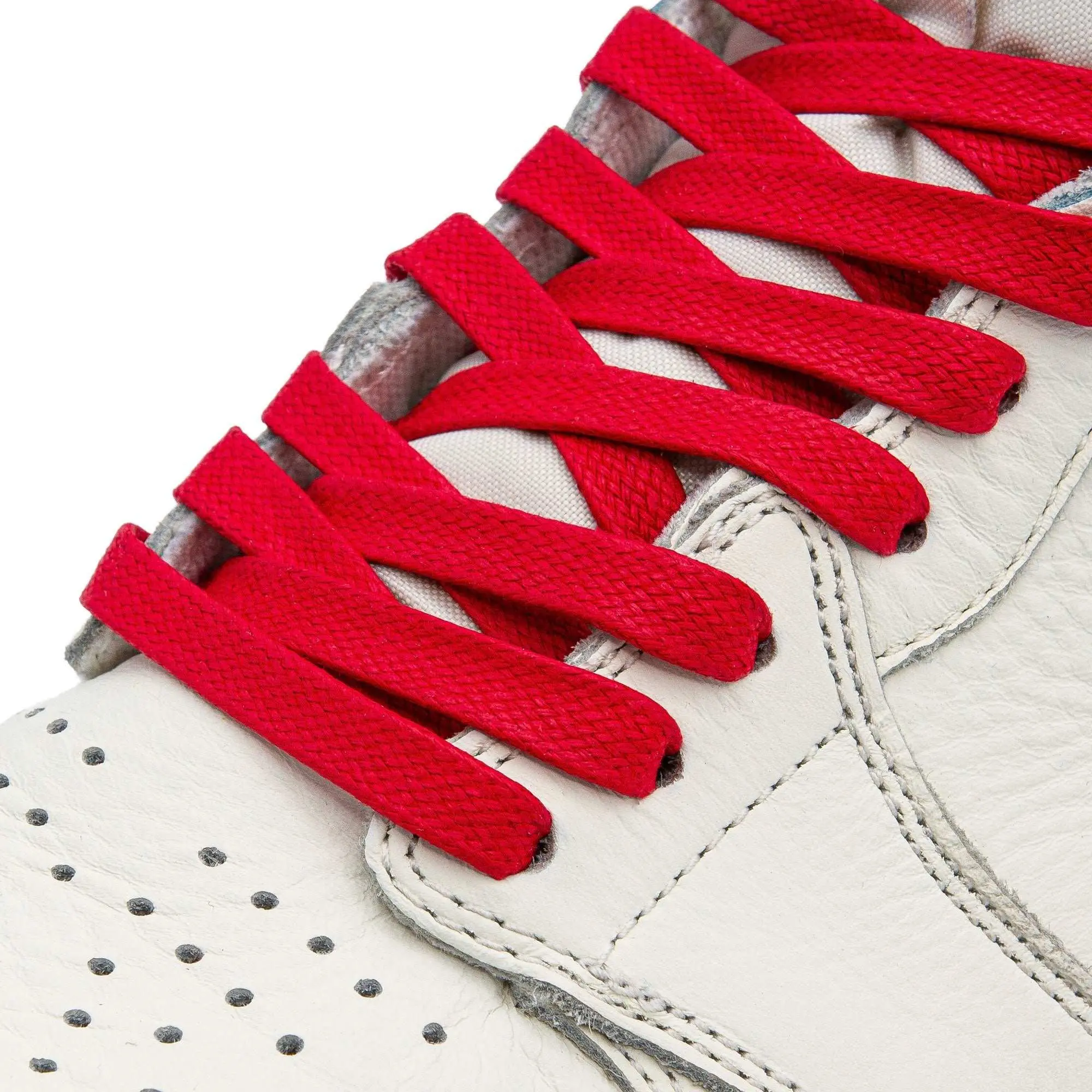 Our Red Waxed Shoe Laces are an easy way to give your shoes a cool new look at an affordable price! These Flat Red Waxed Cotton Shoe Laces look great on Jordan Bred 1's, Nike's, and most other sneakers!