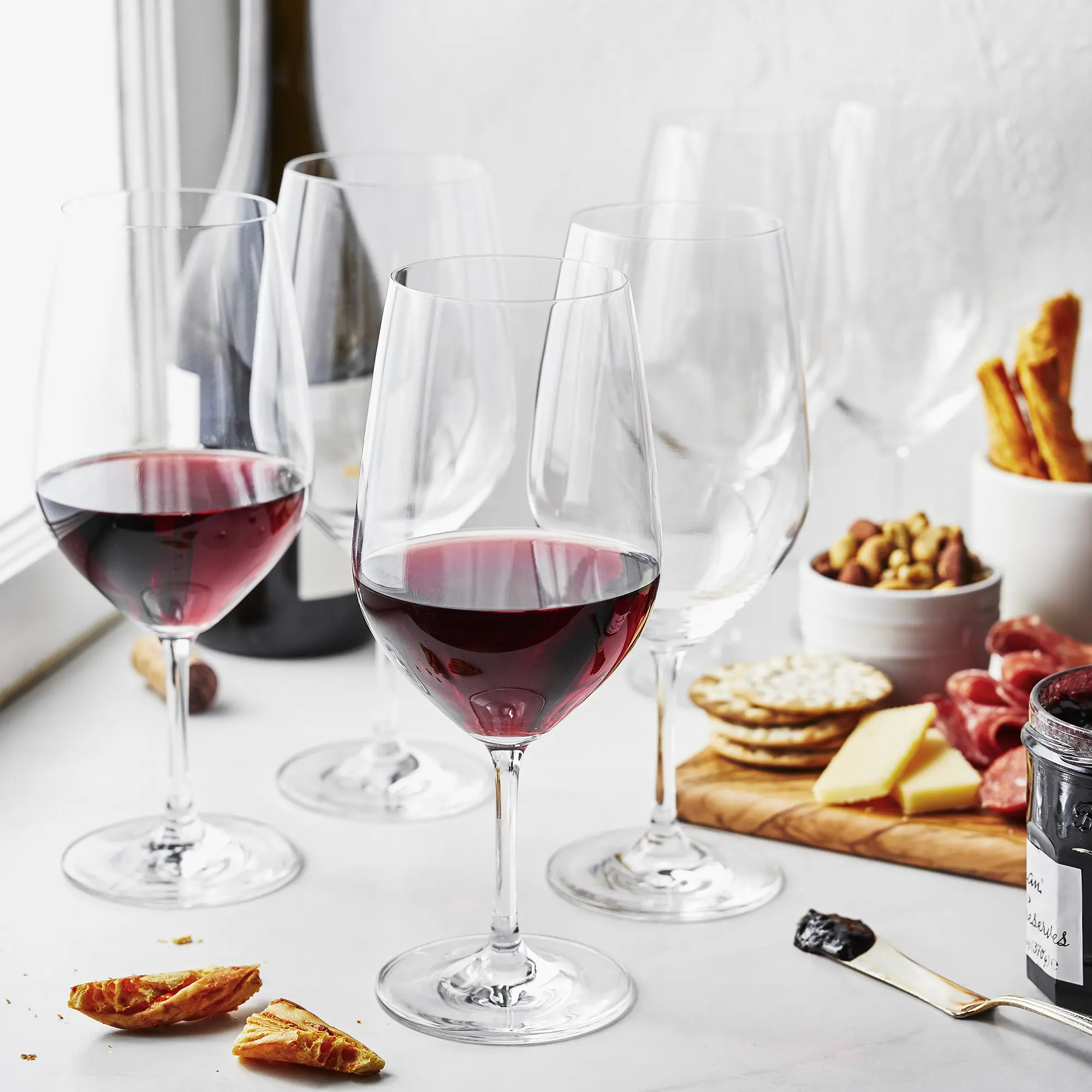 This elegant set of six 21.1 fluid-ounce glasses is designed for both young and mature red wines. The glasses are the perfect shape for allowing full bodied red wines such as Merlot and Cabernet to taste their best. With space to breathe, wines served in these glasses are allowed to develop their complex aromas, enhancing their enjoyment.