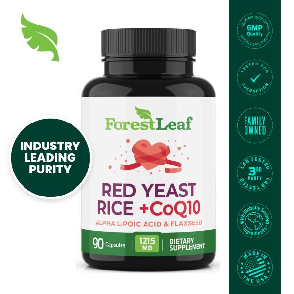 EXTRA STRENGTH 1215 MG RED YEAST RICE - Our red yeast rice 1200 mg. capsules include an extra 15 mg Red Yeast Rice extract per serving (1215 mg total) along with 60 mg of Coenzyme Q-10 (CoQ10), 300 mg Organic Flax Seed, and 225 mg Alpha Lipoic Acid.