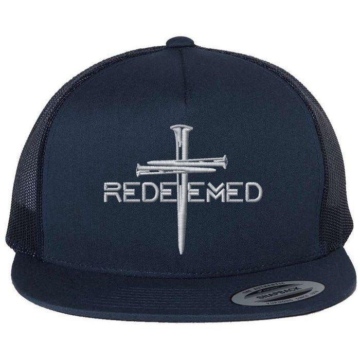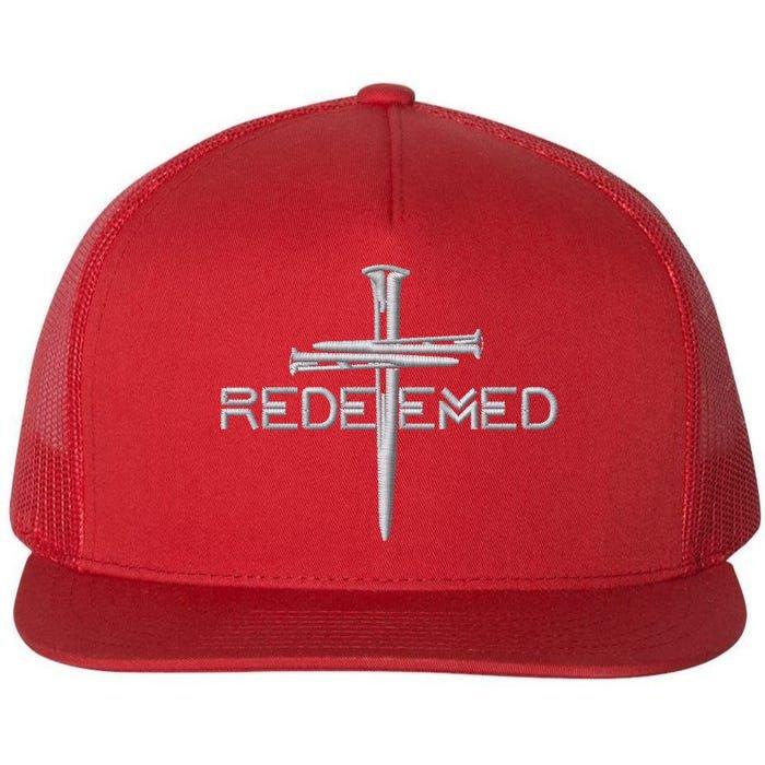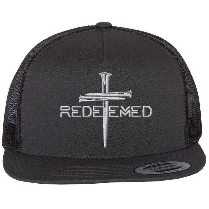 Redeemed By Jesus Christ 3 Nails Cross Christian Faith Embroidered Flat Bill Trucker Hat