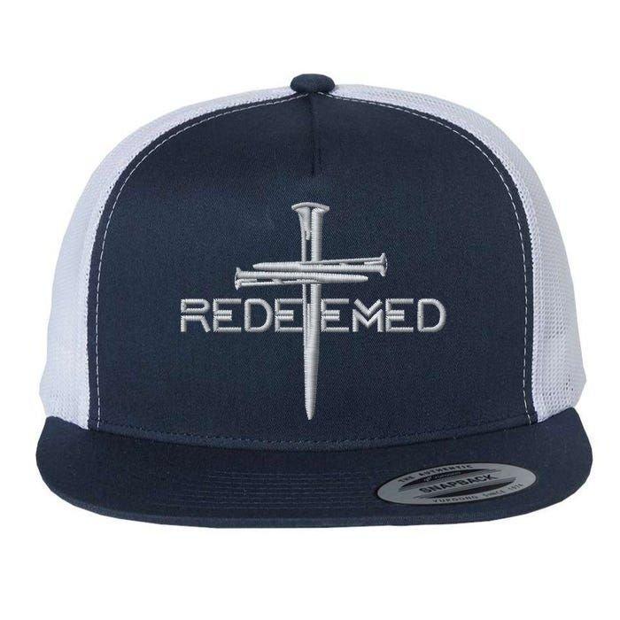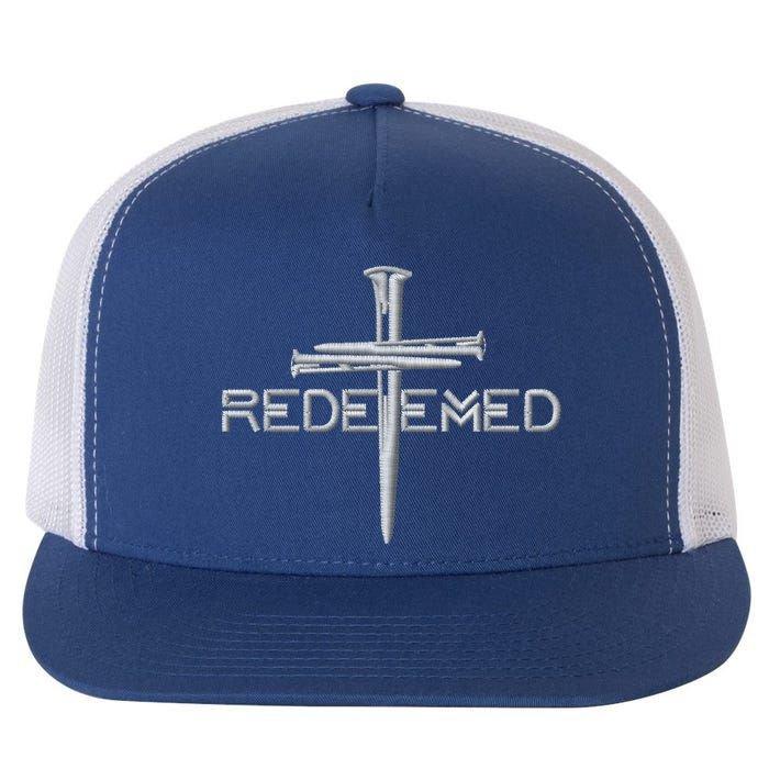 Redeemed by the blood of Christ 3 Nails Flatbill Trucker Hat #redeemed #christ #hat #teeshirtpalace