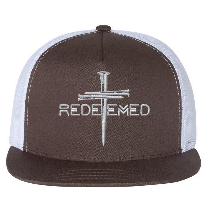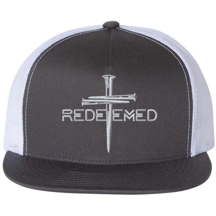 5. Redeemed By Jesus Christ 3 Nails Cross Christian Faith Embroidered Flat Bill Trucker Hat