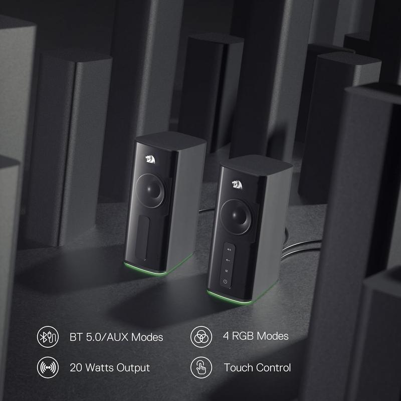 Tired of dull desktop speakers that don’t deliver on sound or style? Meet the Redragon GS814 Stereo Desktop Speaker—your new favorite audio buddy. With 20 watts of powerful output and 4 real sound units, these speakers fill your room with rich, clear stereo sound that makes gaming, music, and movies pop. Switching between Bluetooth 5.0 and AUX mode is a breeze, giving you flexible ways to connect your devices. The touch-control panel puts volume, track switching, and RGB lighting right at your fingertips—no fumbling with buttons. Speaking of lighting, the dynamic RGB bar adds a splash of color that syncs with your vibe, making your setup look as good as it sounds. Plus, the extra-long 83-inch cable means you can easily place each speaker on either side of your monitor or desktop without awkward stretching. Whether you’re gaming late or chilling with tunes, the GS814 brings powerful sound and cool style to your space. Ready to upgrade your desktop audio? Grab the Redragon GS814 and hear the difference today!