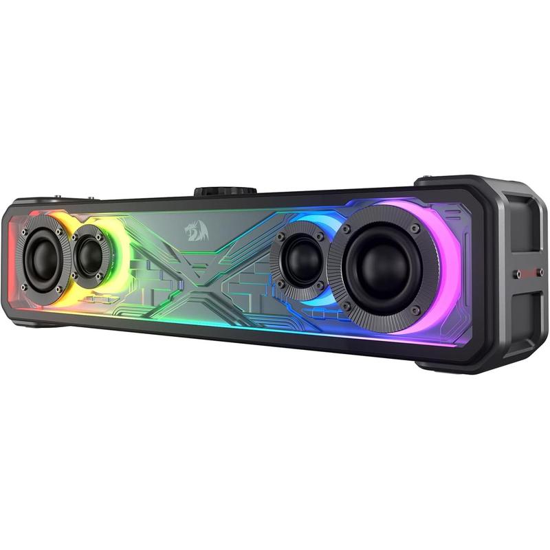 Get ready to elevate your audio experience with the Redragon GS817 RGB soundbar! This 2.0 channel stereo system delivers a massive 30W max power output, ensuring crystal-clear sound and powerful bass. Perfect for any audio enthusiast, whether you're gaming or enjoying music, every moment feels immersive and alive. Experience the difference with Redragon's sound technology.