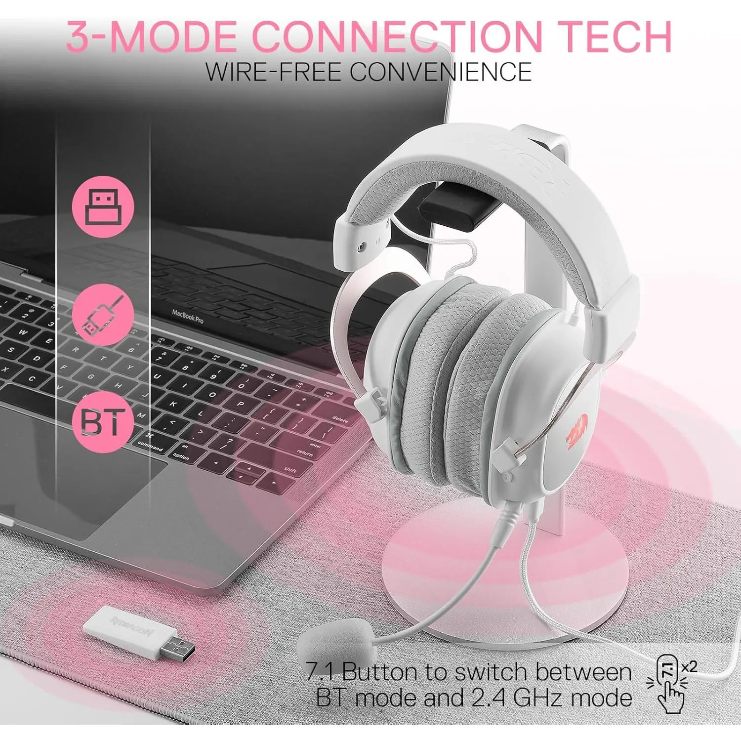 ·Wireless Freedom Unleashed:Experience Gaming Freedom with Redragon's RGB 3-Mode wireless gaming headset. Easy to switch from USB-C wired, BT 3.0/5.0 to 2.4Ghz wireless modes. Cut the Cord, Move with Ease, and Elevate Your Gaming Experience to New Heights.