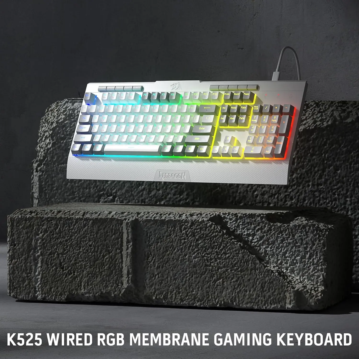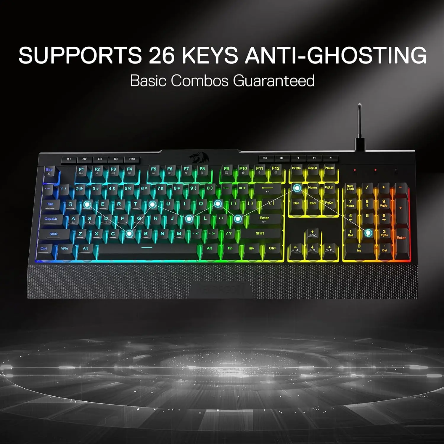 Ready to level up your gaming setup? The Redragon K525 RGB keyboard blends style and function with its full 104-key membrane layout and quiet keys, perfect for fast-paced games or work. Imagine customizing your lighting with 16.8 million RGB colors—choose from seven preset modes or create your own using the pro software. Four dedicated macro keys let you program complex commands instantly, while 26-key anti-ghosting ensures every keypress registers flawlessly. Plus, dedicated media controls mean you can jam to tunes or pause the action without leaving your game. The ergonomic wrist rest keeps your hands comfy during marathon sessions, reducing strain and boosting endurance. Built tough with double-shot keycaps and tested for 10 million keystrokes, this keyboard is ready to game as hard as you do. Included in the box: the RGB keyboard, ergonomic wrist rest, and user manual. Ready to bring your gaming vibe to life? Grab the Redragon K525 and game on with style and comfort!