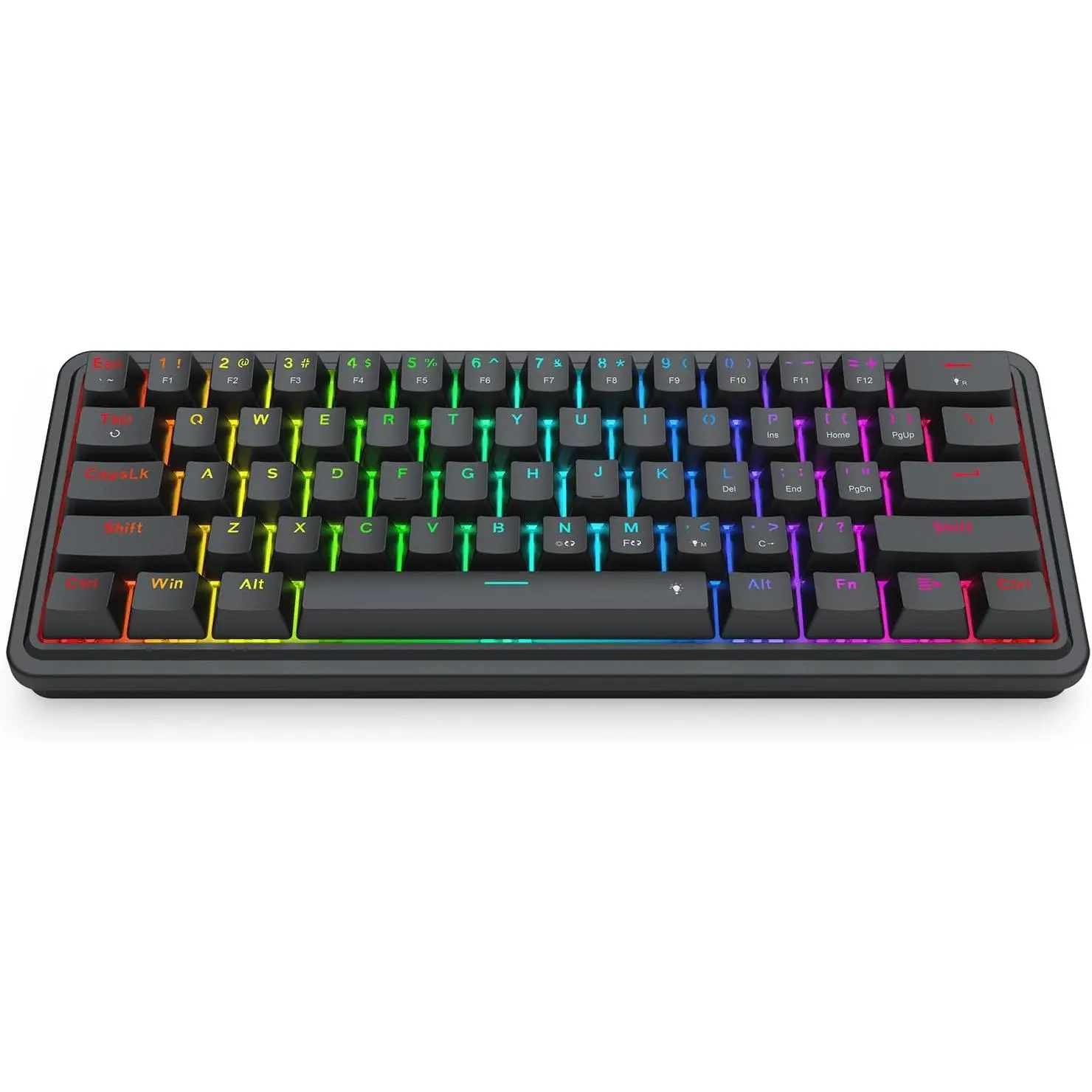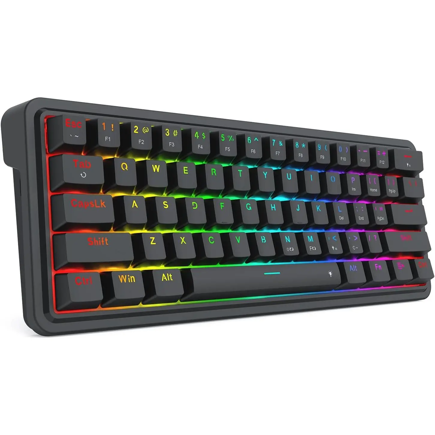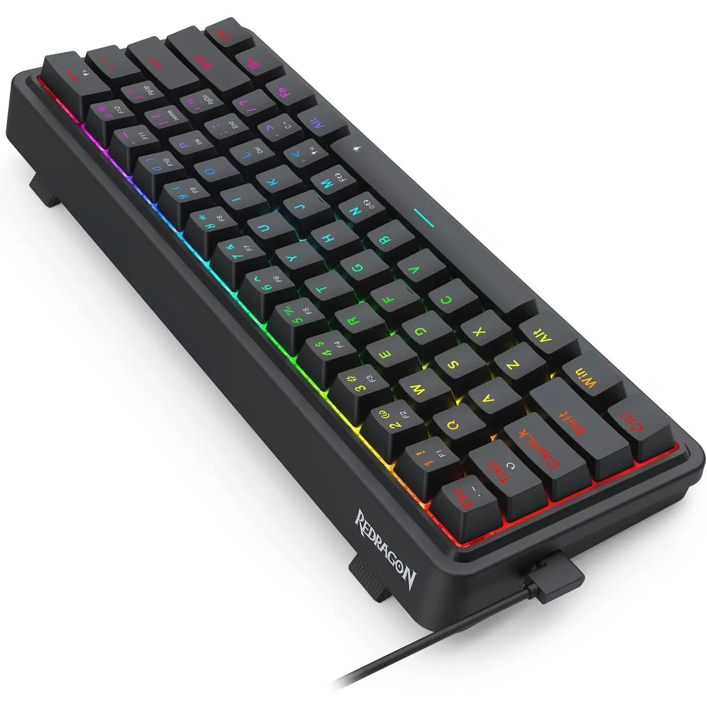 ·Wired 61 Keys Layout - Redragon 60% layout K722 in wired mode meets the user's need for extreme desktop neatness especially for gamers. 61 keys ultra-compact and lightweight slim design frees up precious desk space for larger mouse movement