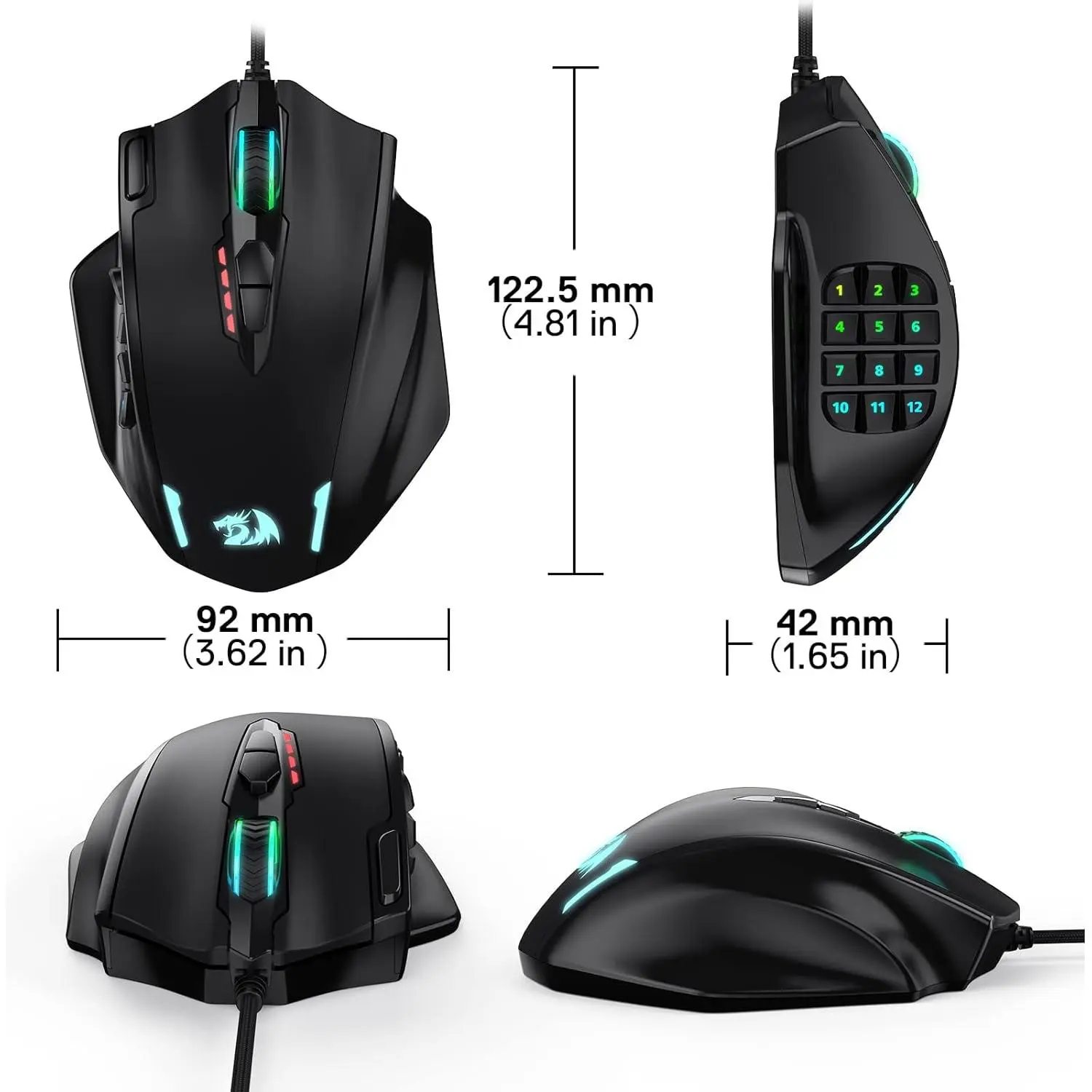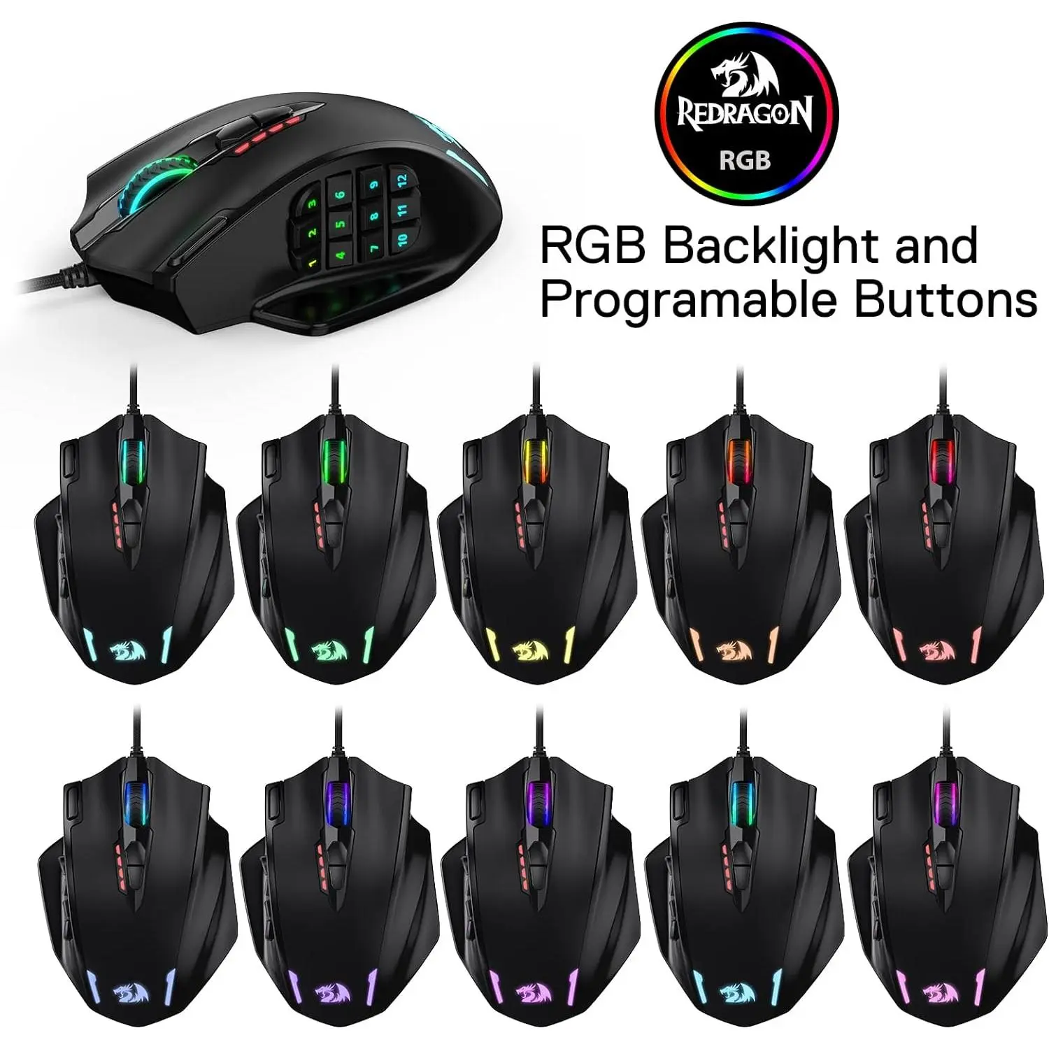 There are 12 side buttons on the mouse. All of the 18 buttons can be set for different functions after installing software. You can also customize your mouse to fit you special needs with the macro editing function.