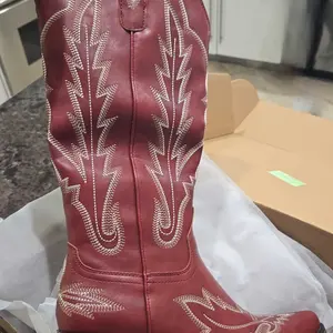 I love these boots! Color is perfect red, design on them is so nice I get soooo many compliments and they are so comfty