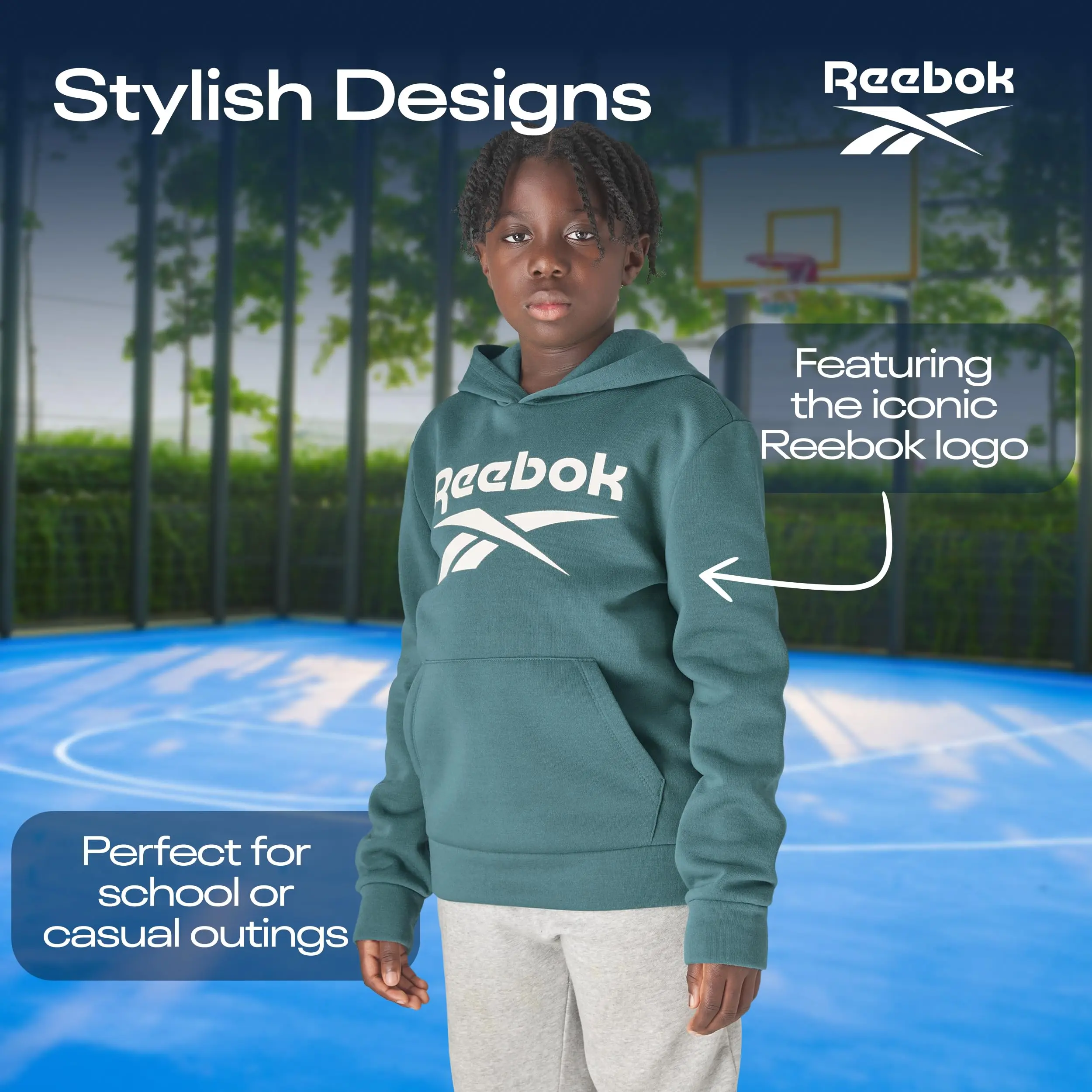 The Reebok Boys' Fleece Hooded Sweatshirt 2 Pack offers both comfort and style, perfect for everyday wear. Each pack includes two hoodies, made from soft, durable fleece material that ensures warmth and coziness. Featuring the iconic Reebok logo, these sweatshirts come in a variety of colors to suit different tastes. The hooded design provides extra protection against the elements, making it ideal for outdoor activities. With ribbed cuffs and a kangaroo pocket, these sweatshirts combine practicality with a trendy look. Also available in black hoodie, red hoodie, black sweatshirt, toddler sweatshirt, blue hoodie, green hoodie, boys hoodie, brown hoodie, toddler hoodie, hoodies for boys, lightweight hoodie, grey sweatshirt, boys sweatshirts, boys hoodies, hoodies for teens, black hoodies, top gifts for teen boys, boys' fashion hoodies & sweatshirts, kids hoodie, green sweatshirt, plain black hoodie, boys hoodies size 10 12, boys hoodies size 14-16, sweat shirt, boys' activewear, hooded sweatshirt, royal blue hoodie, blue sweatshirt, sweat shirts.