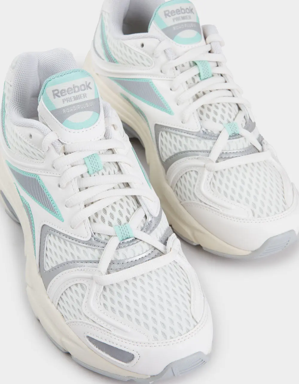 Reebok Premier Road Plus VI Shoes. Put your best foot forward in these running-inspired Reebok shoes from 2009. They've been reimagined for everyday wear, with new colors and a soft DMX foam midsole to keep you comfortable. A shank plate in the midfoot provides lightweight support and stability. Textile and synthetic upper. Lace closure. TPU midfoot stabilizer. Textile lining. Durable, two-piece rubber outsole. Imported.