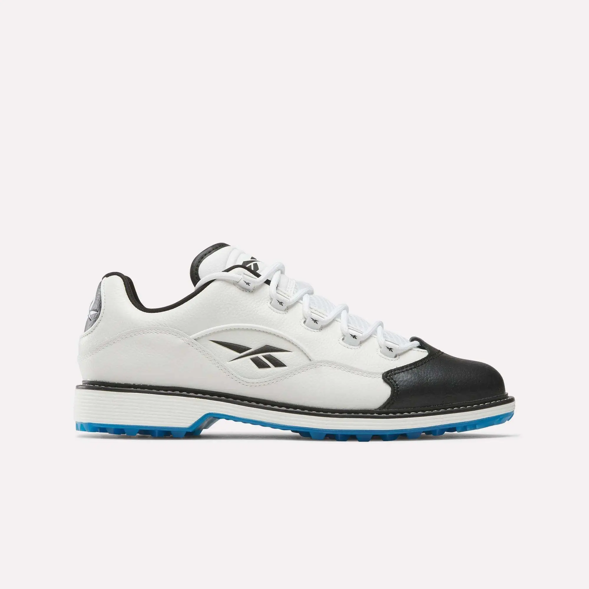 On the course or in the clubhouse, elevate your experience in these Reebok golf shoes. The full grain leather upper has a contrasting leather toe that's inspired by a heritage basketball silhouette. The spikeless crystal outsole makes it easy to transition from the links to the dining room.