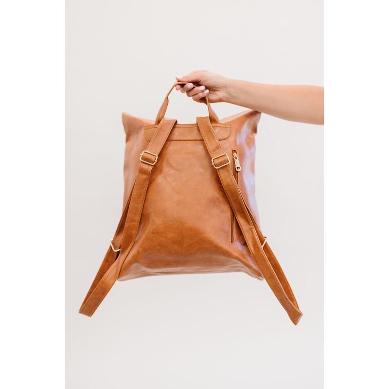 The Reese features adjustable backpack straps and a top handle for a quick grab. It has two exterior pockets (one front and one back) and three interior pockets.