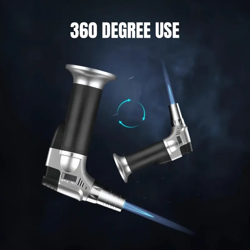 Refillable Kitchen Cooking Torch, 360° Rotation, Blowtorch with Safety Lock and Adjustable Flame, Multi-Scene Suitable for Dessert Caramel Pudding Grilling Baking Camping (Butane Not Included)