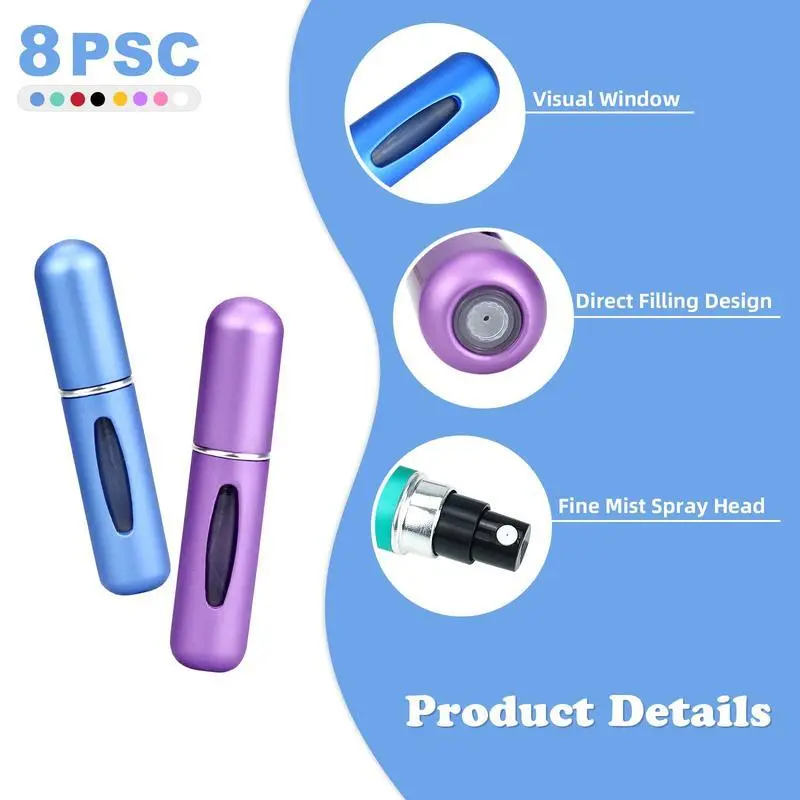 ·Multi-Use: Ideal for perfume, aftershave, essential oils, makeup remover, and more. The 8-piece set lets you keep one in the gym bag, car, office, or party clutch. Stylish and practical for men and women alike—perfect for travelers, commuters, or anyone who wants to stay fresh on the go.