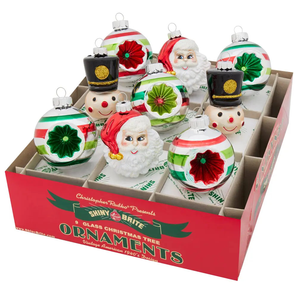 HOLIDAY SPLENDOR 9 COUNT 2.5"REFLECTOR ROUNDS & FIGURES by Christopher Radko #christopherradko #christopherradkoornaments #shinybrite