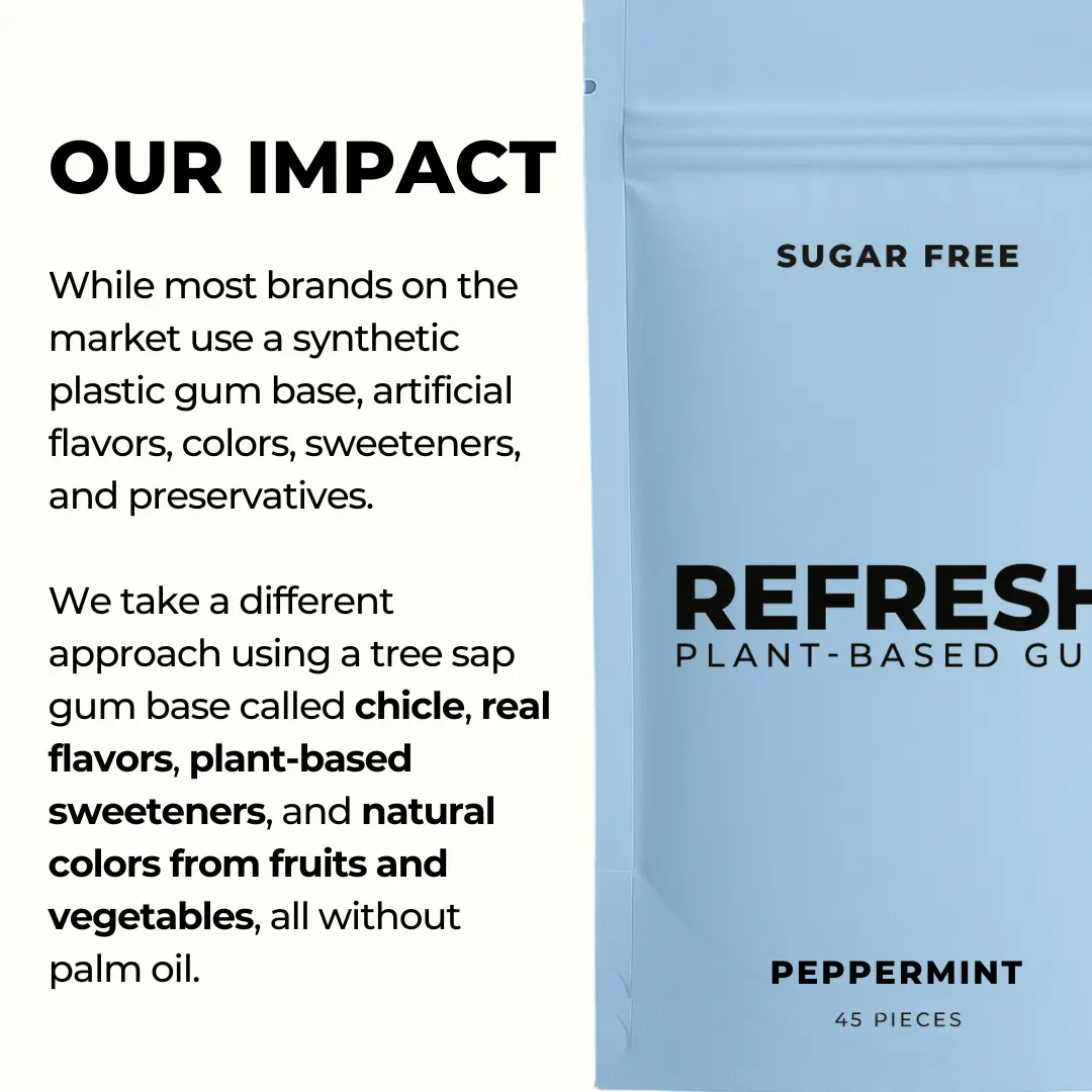 Ingredients: Xylitol, chicle gum base, organic mint, natural flavors, glycerin (coconut), vegetable juice (color), gum acacia, carnauba wax, stevia leaf extract.
