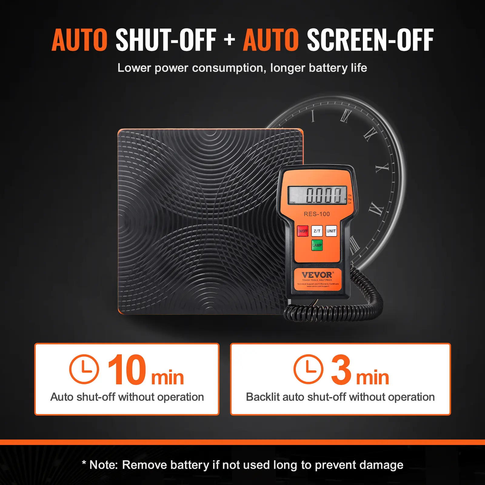 • Ready-to-Use with Included Dry Battery: The HVAC refrigerant scale comes with a DV 9V dry battery for immediate use. Intelligent energy-saving features include an automatic shutdown after 10 minutes of inactivity and a backlight that turns off after 3 minutes without operation, extending battery life. For maintenance, remove the battery if not in use for extended periods to prevent damage.