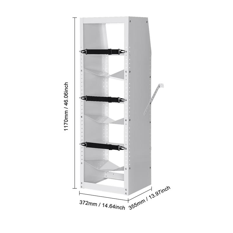 • Compatible with Various Tanks: Our refrigerant tank rack features adjustable holes at the front and back, allowing you to customize shelf and stopper heights based on tank sizes. The rack measures 372x355x1170 mm (14.64x13.97x46.06 inch), accommodating standard bottle tanks weighing 30 to 50 lbs. Maximize space utilization while ensuring proper storage.