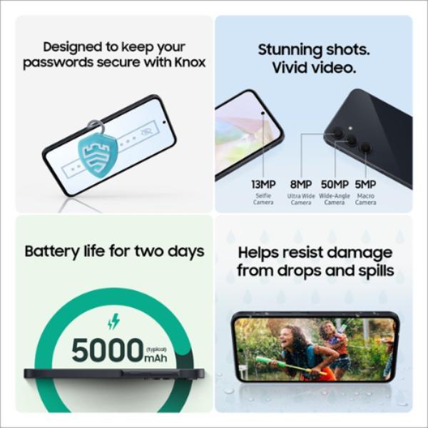The Refurbished Samsung Galaxy A35 in good condition offers a seamless blend of performance and practicality. With its vibrant 6.5” Super AMOLED display, a versatile quad-camera setup, and powered by a capable processor, it’s perfect for capturing moments and multitasking with ease.