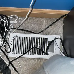 OK, I wanted to wait a couple day trying this closing the door everything to see how well it worked. The cords you see is another fan. I have to have still on top of it because it does not cool the room and this is a small room in the upstairs. It says it's 64° but it's not it's like 72 in here.
