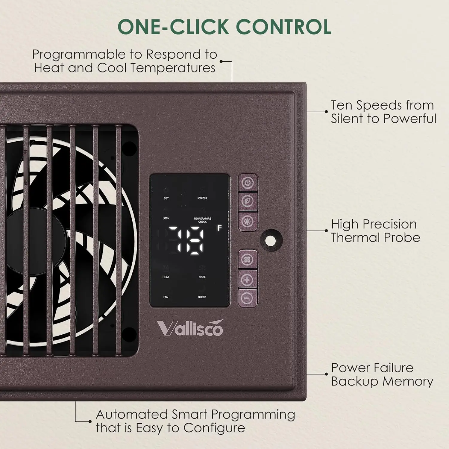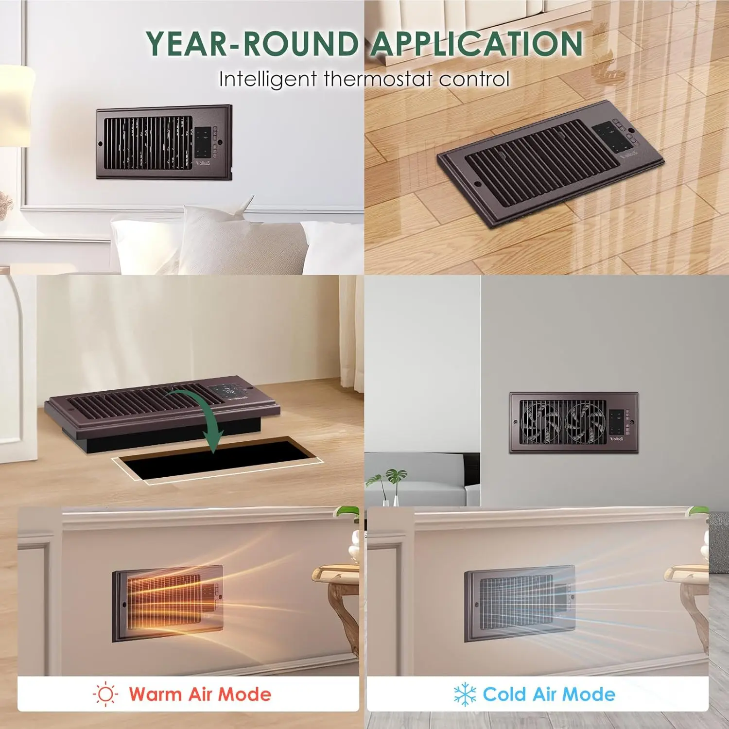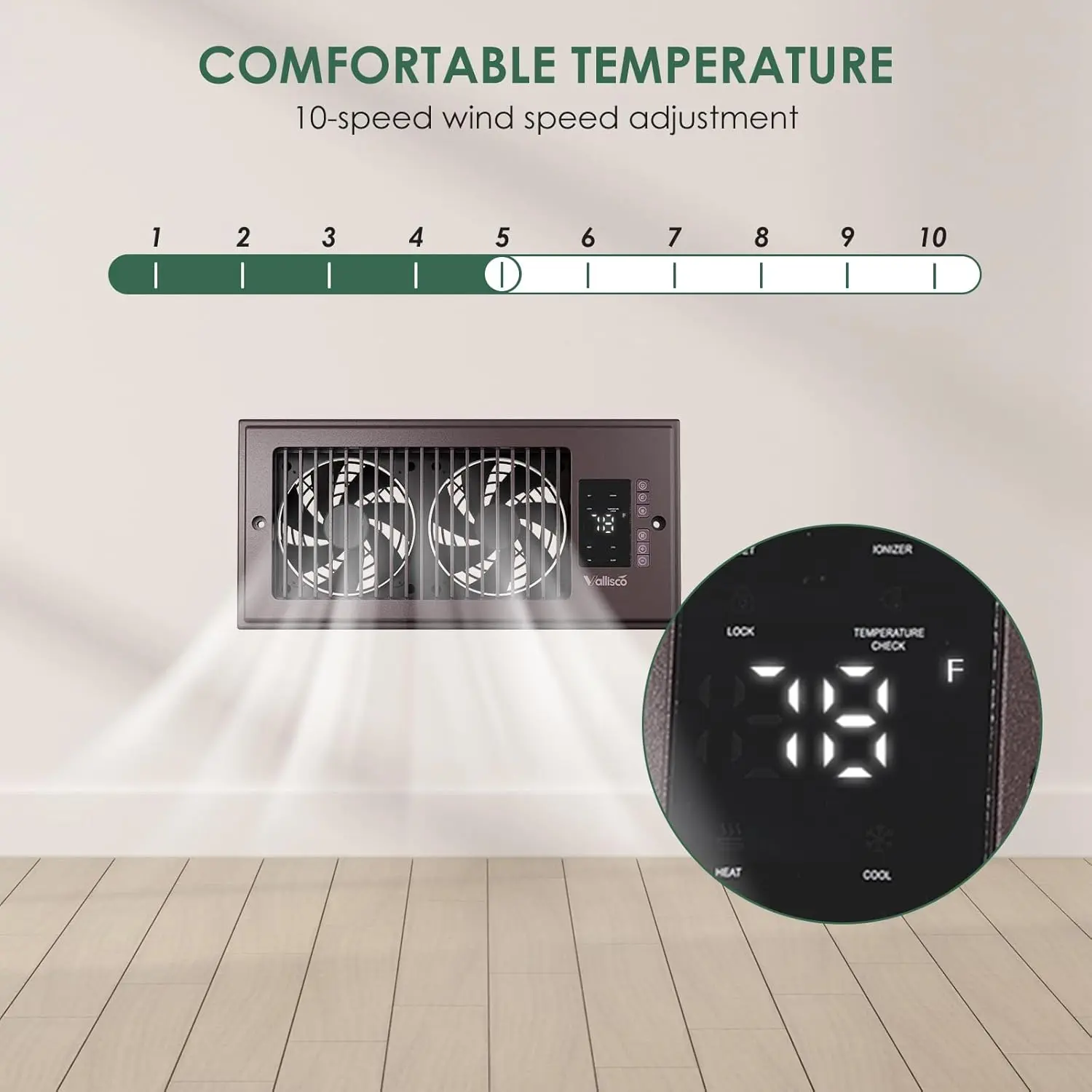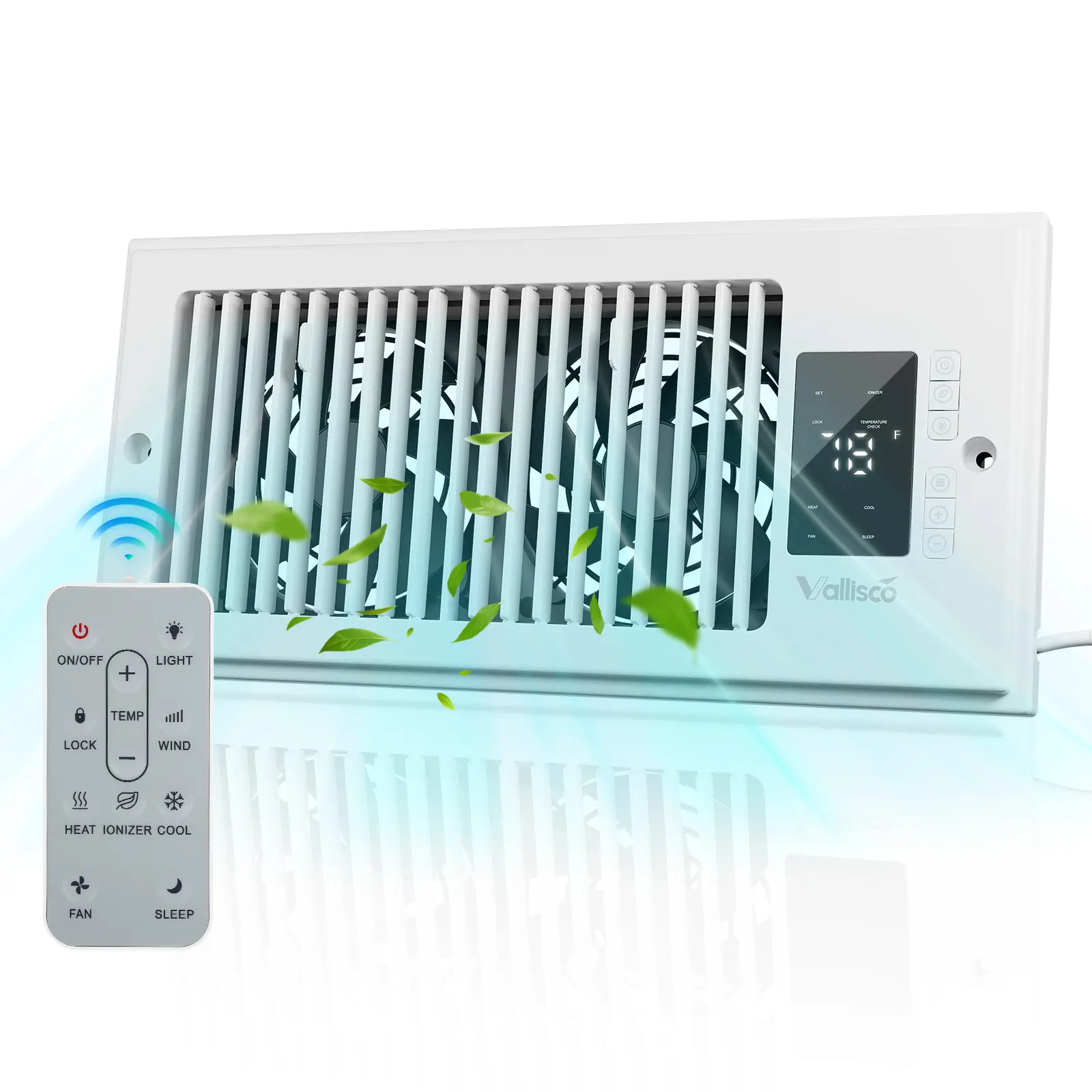 This vent fan is absolutely amazing. It really moves air cools the air heats. The air has an ionizer as a heater. Select your temperature a remote control. I cannot say enough, good things about this.