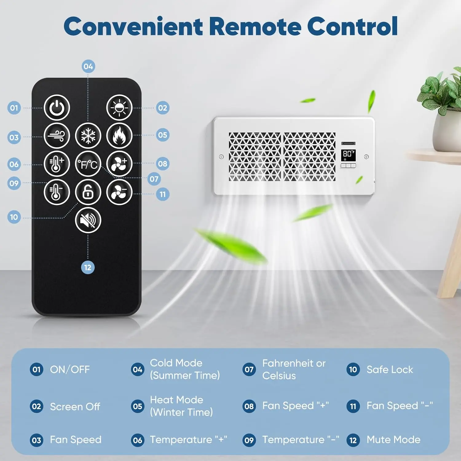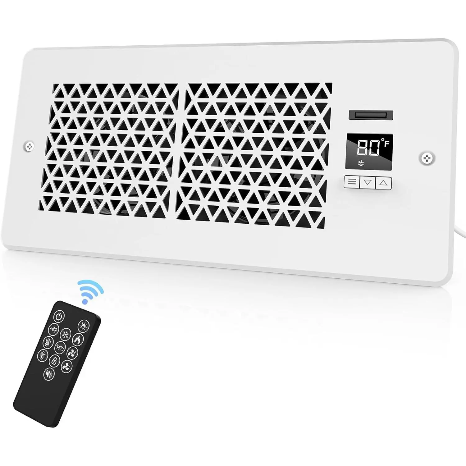 Simply install the fan in your wall register. Adjust the settings using the remote control and thermostat. Enjoy enhanced cooling and heating with this efficient fan.