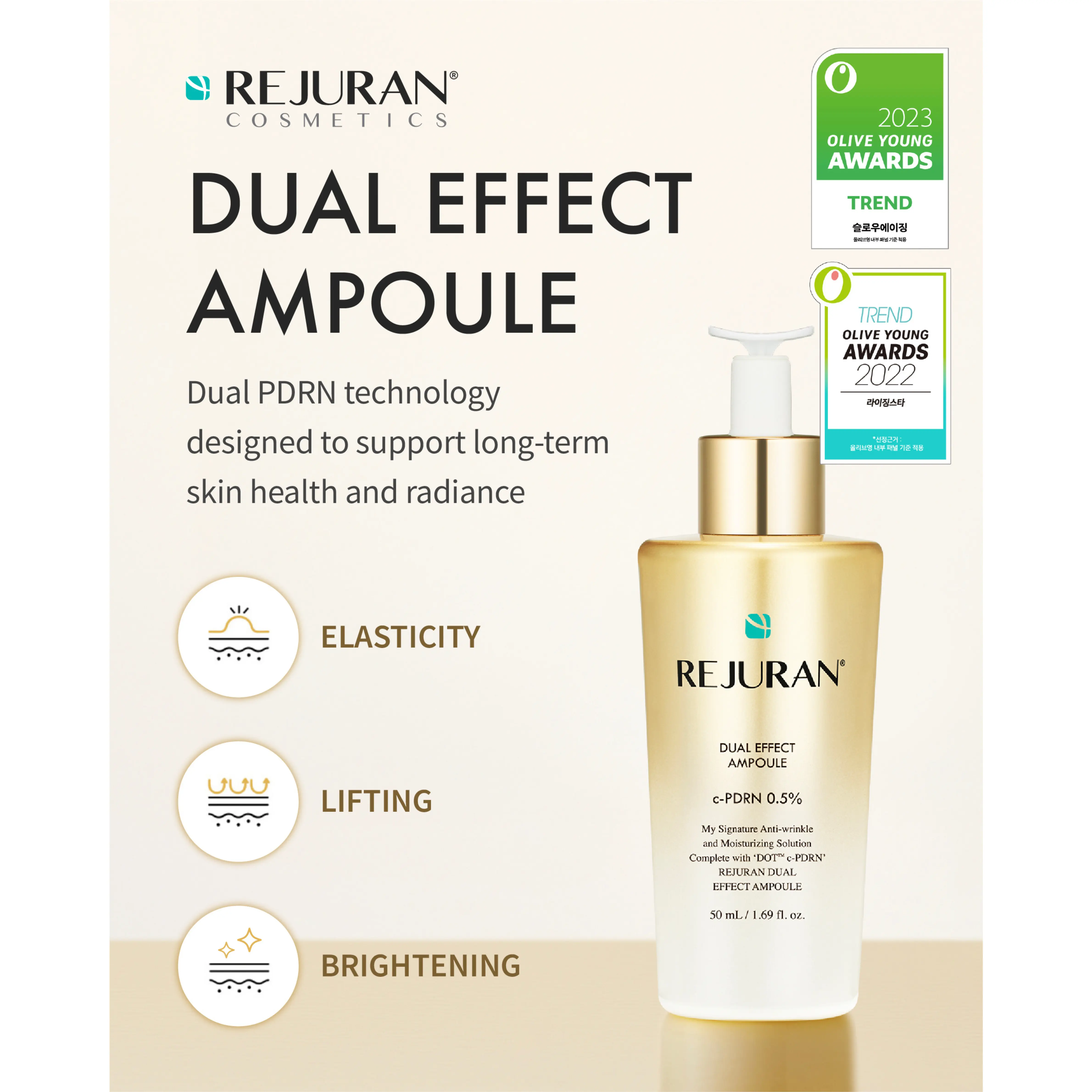 El producto estrella  Rejuran Dual Effect Ampoule (c-PDRN 0.5%) Es un ampoule regenerador, enfocado en: 	•	reparación de la piel 	•	hidratación profunda 	•	mejora de textura 	•	reducción de líneas finas El ingrediente clave PDRN (derivado de DNA) se usa mucho en dermatología para regenerar la piel y mejorar elasticidad.