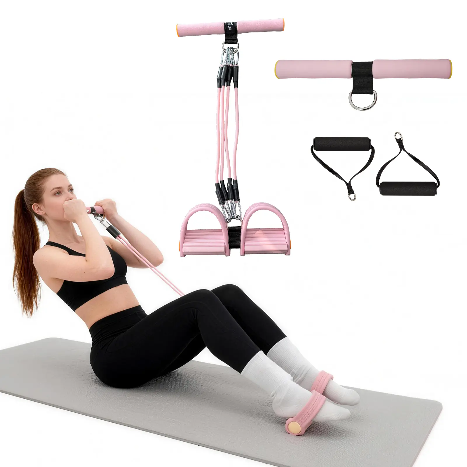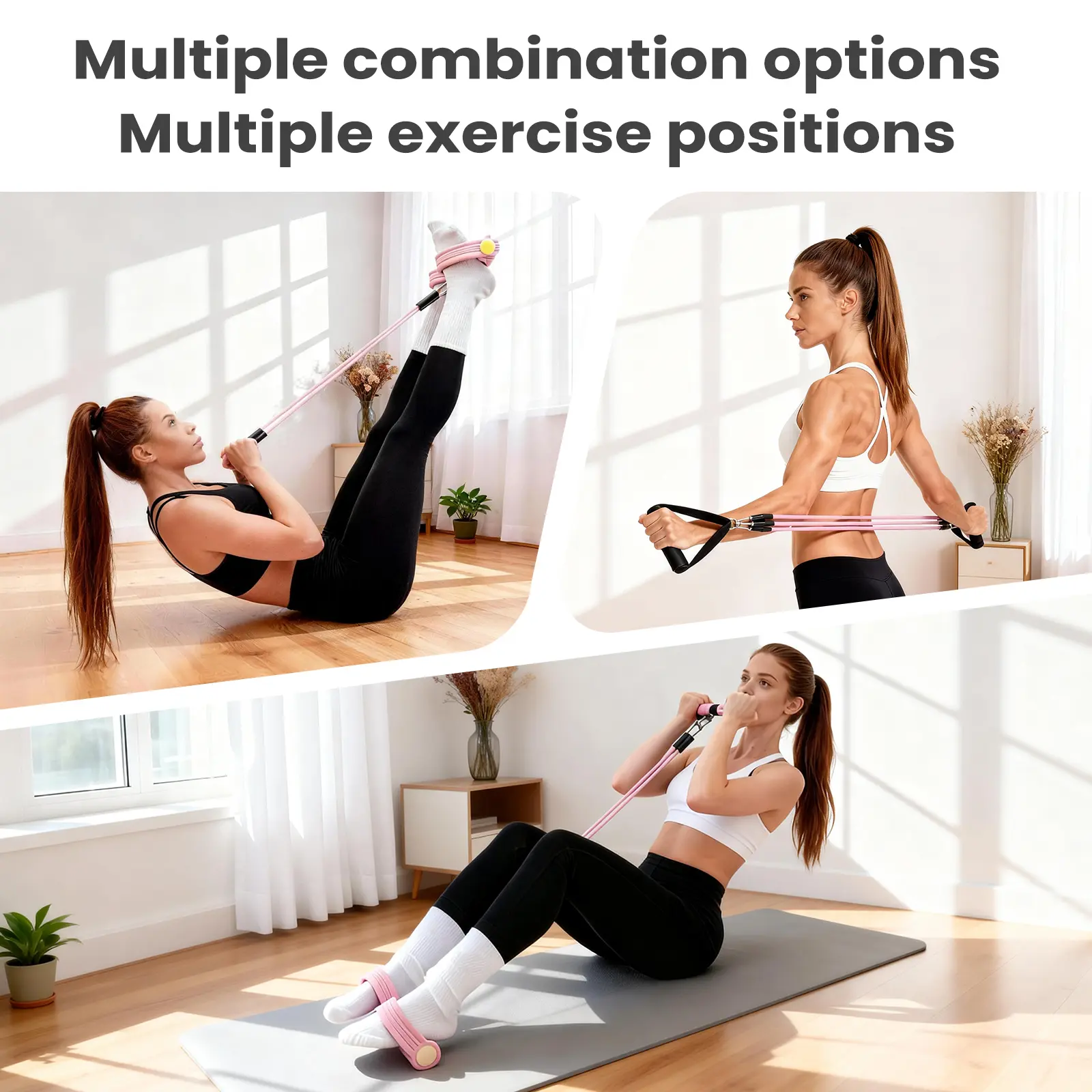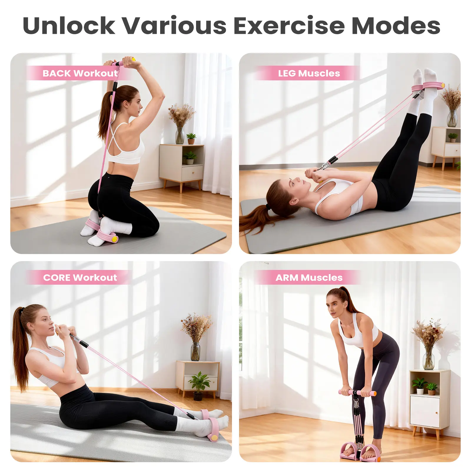 ·Customize your workout intensity by simply adding or removing elastic tubes (from 1 to 4 tubes). Perfect for beginners building foundational strength or advanced users looking to increase challenge.
