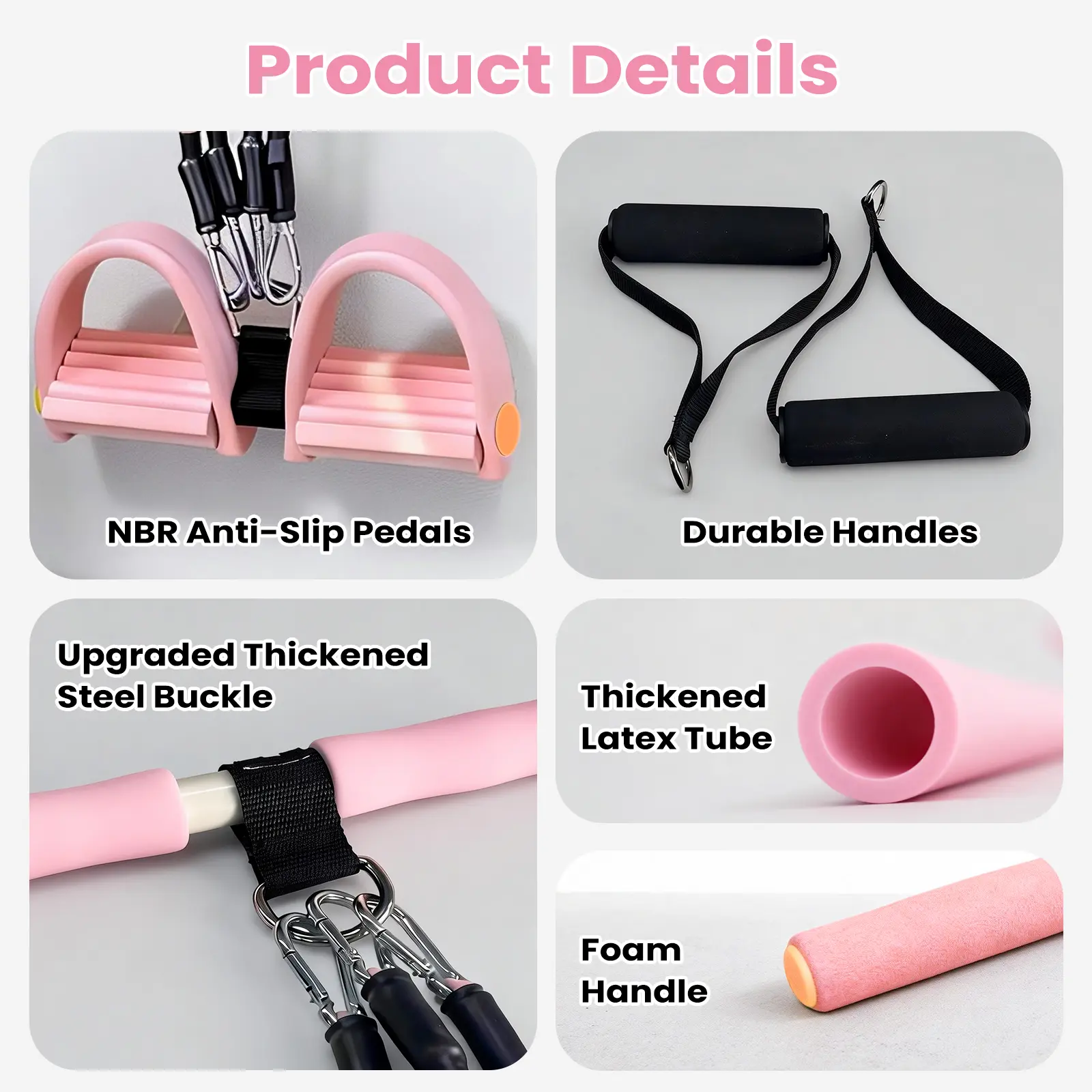 ·The set includes soft, high-density foam handles that provide a secure, non-slip grip while protecting your hands during long sessions. The anti-slip foot pedals keep you stable and balanced, even during intense movements.