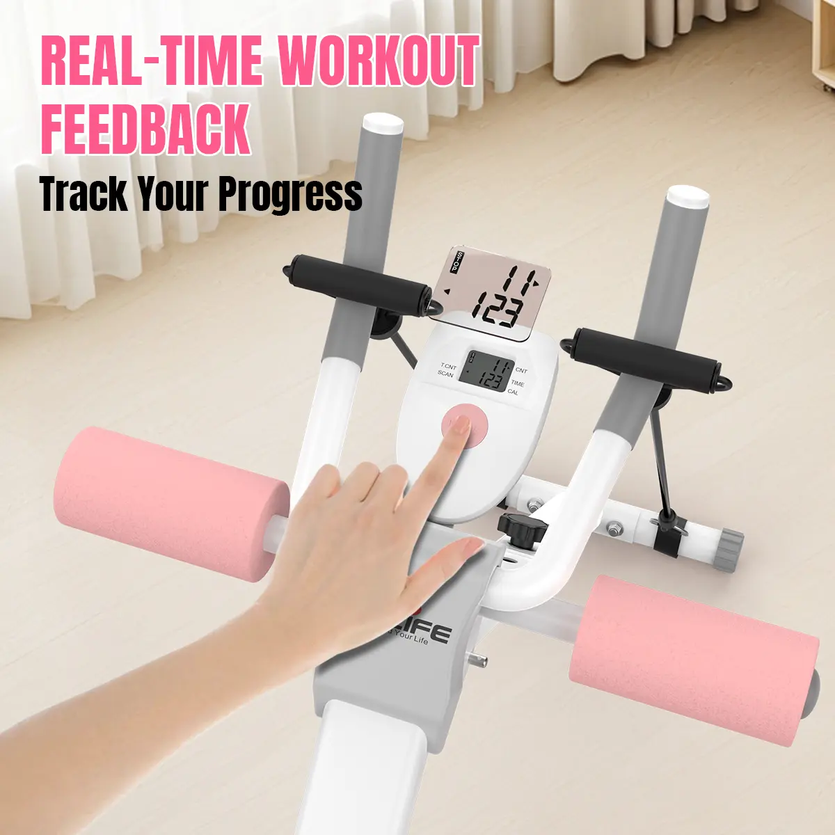 ·The LCD training display clearly displays cal, workout times and training reps.