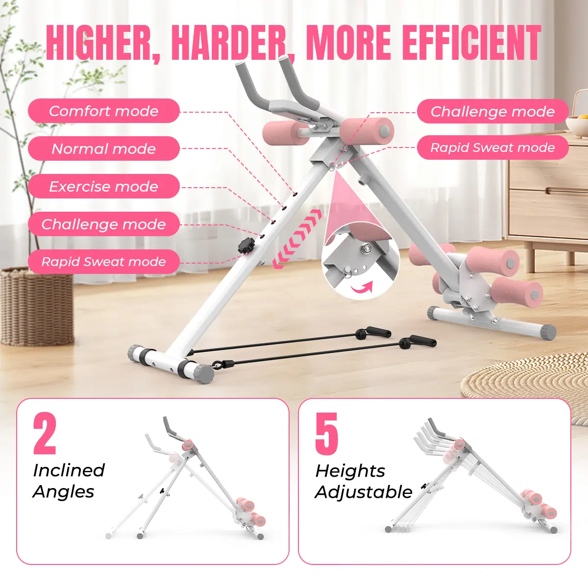 ·2-level incline angles and 5-level training heights are adjustable to meet different needs, targeting thigh, calf and abdominal muscles to maximize training efficiency.