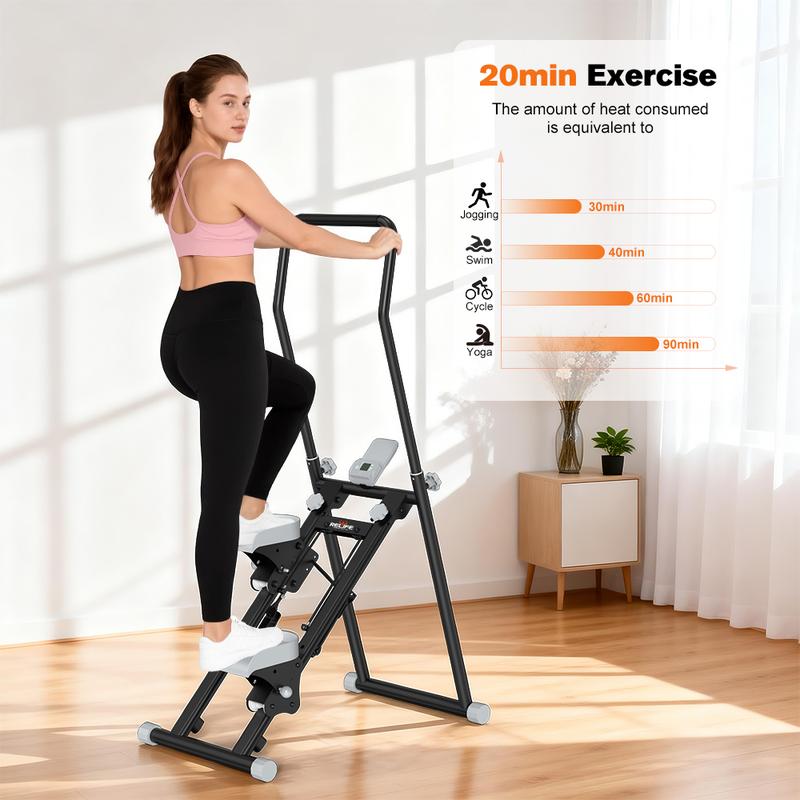 【FULL-BODY CARDIO & STRENGTH TRAINING】Exercise and build strength using your own bodyweight. Targets legs, glutes, and core with low-impact movement.Just 20 minutes on the climber is equivalent to 30 minutes of jogging, 40 minutes of swimming, 60 minutes of cycling, or 90 minutes of yoga, making it an efficient and effective choice for any fitness level.