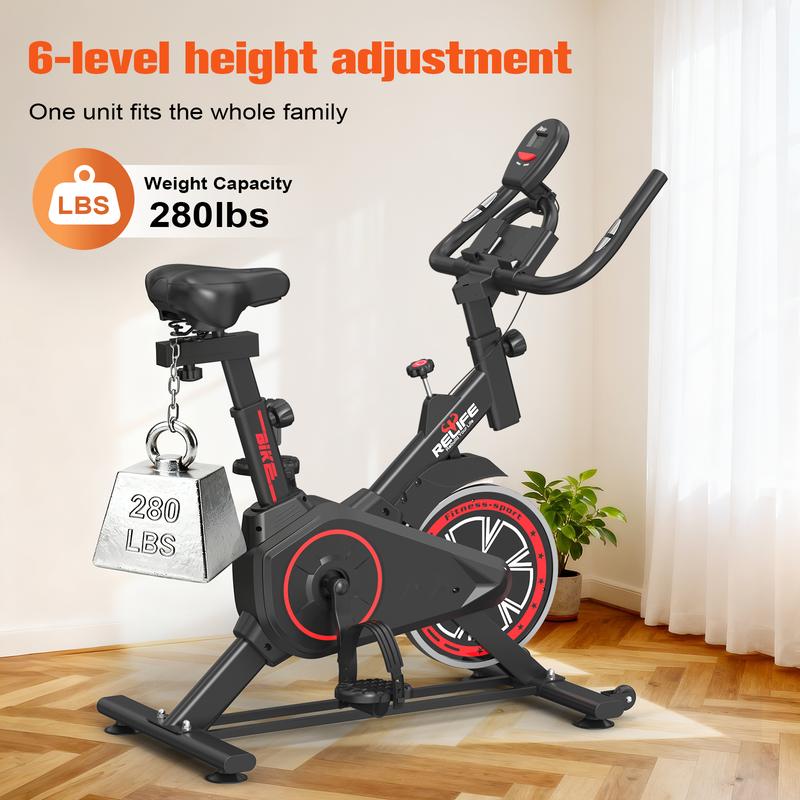 ·Built for stability—even during high-intensity rides, this exercise bike stays secure. With a maximum weight capacity of 280 lbs, it accommodates most users, providing a safe, wobble-free workout experience.