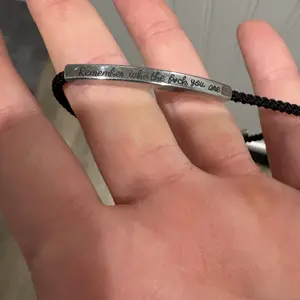 The writing was off center , cutting off the last word. And the clamp at the end of the bracelet fell off.