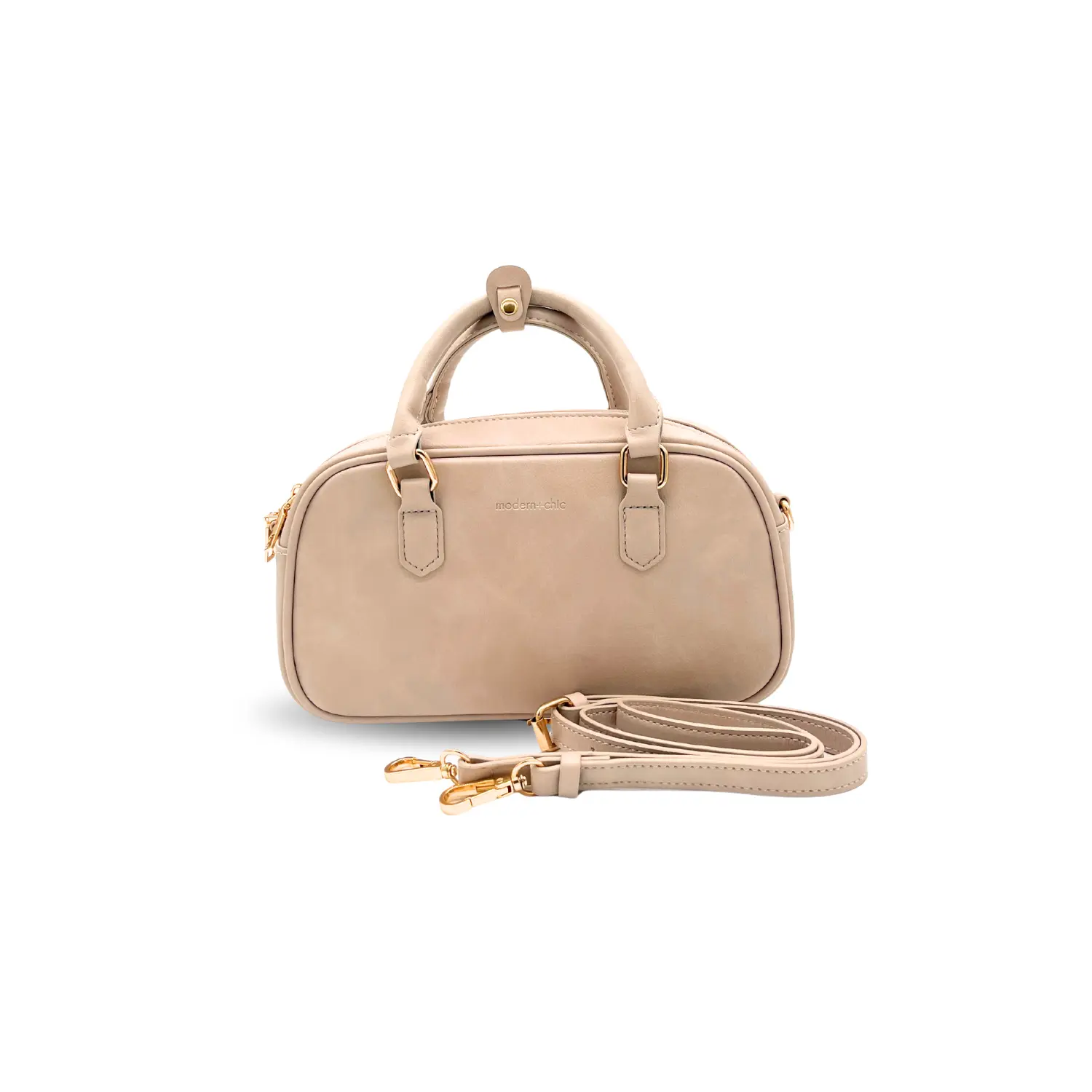 The detachable vegan leather strap adjusts from 42"–48", allowing you to wear the Remi comfortably as a crossbody bag or top-handle handbag depending on your style.