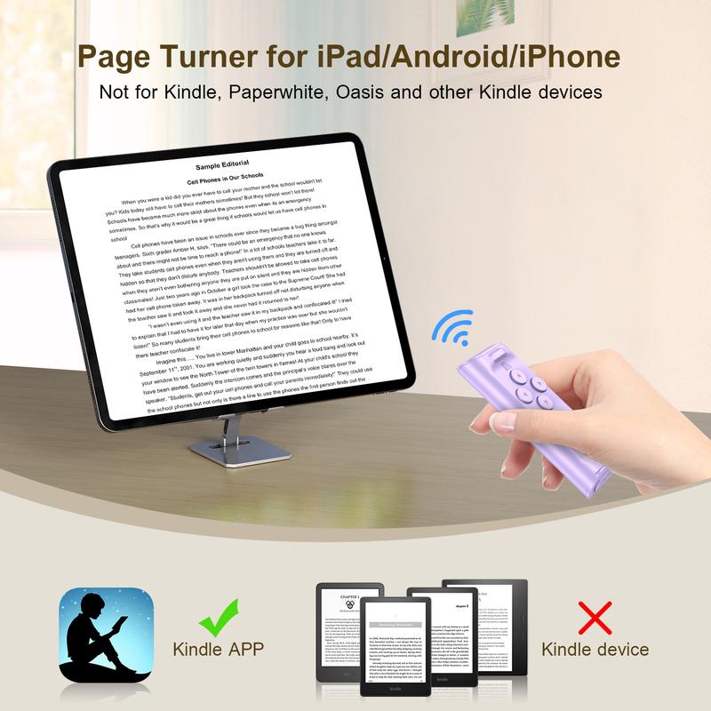 Our multifunctional remote control scroller helps you turn pages in the Kindle app for a more comfortable reading experience. Ideal for long reading sessions.(Note: ONLY compatible with Kindle APP or other e-book APPs & NOT support direct use on reading devices)