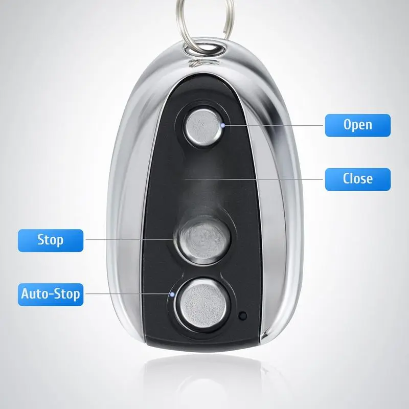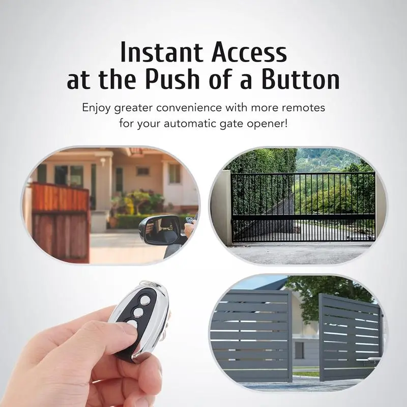 100 FOOT RANGE: Stay nice and cozy in your and open your gate from 100 ft. away with this convenient remote control EASY TO PROGRAM: Quickly pair this remote with your existing gate opener system using the ANT button on your openers circuit board LIGHT YET DURABLE: Constructed from high quality aluminum alloy, our remote has an incredibly low weight and resists wear & for of -proof use WIDE COMPATIBILITY: Open any sliding gate or any other 433.92 MHz non-encrypted gate from up to 100 away with this handy remote control GREATER CONVENIENCE: Set the system to automatically close your gate 12, 24 or 36 seconds after opening it with this remote gate opener's auto close feature
