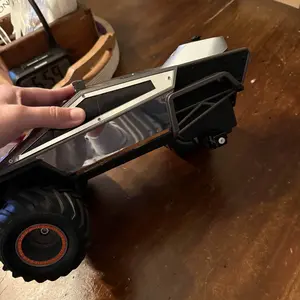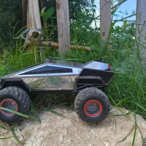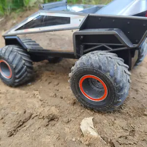 The Cybertruck RC Toy Car is a 4WD Monster Truck style, featuring LED lights and music. It's an all-terrain off-road pickup with 2.4GHz remote control. Ideal for kids 6 and up, boys and girls. The cyber metal shell adds to its appeal. 🚗