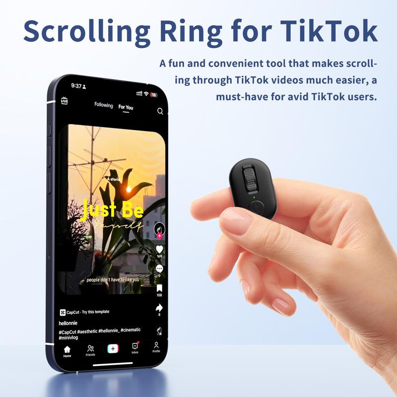 Ever get tired of constantly swiping your phone while binge-watching TikTok or reading on your Kindle App? The Kinmates TikTok Scrolling Remote Control Ring is here to upgrade your experience. This nifty Bluetooth ring lets you scroll videos effortlessly, tap likes, and turn pages without ever touching your screen. Its comfy ring design fits your finger perfectly, making it super easy to control your device on the go or lounging at home. Compatible with most iPhones, iPads, and Android devices, it's the perfect companion for your favorite apps. Included in the box is the stylish ring available in multiple colors like pink, black, and blue. Say goodbye to finger fatigue and hello to hands-free fun! Ready to enhance your viewing and reading sessions? Grab yours today and scroll smarter, not harder.