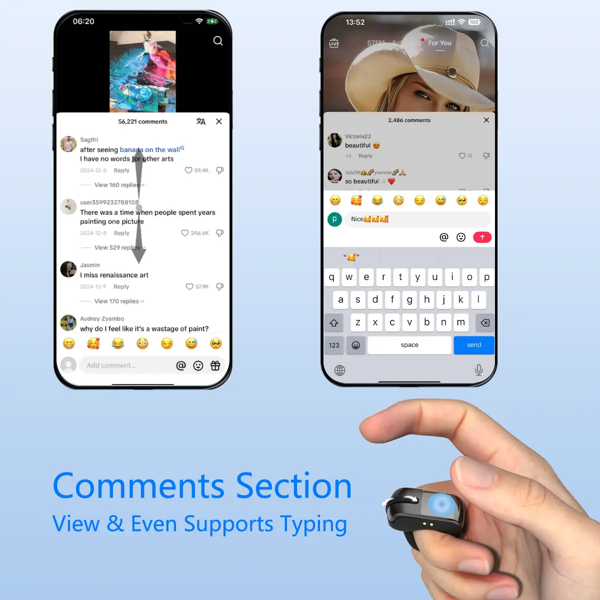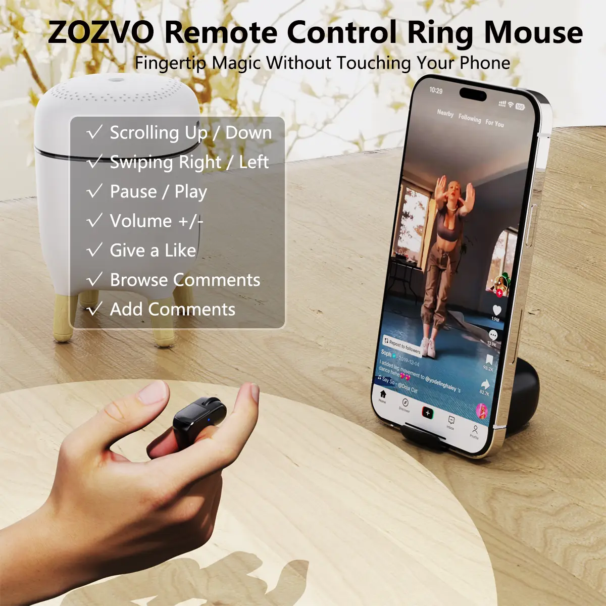 Tired of awkwardly swiping your phone or laptop to scroll through videos or presentations? The ZOZVO Bluetooth Remote Control Scrolling Ring Finger Air Mouse is here to make your life easier and more fun. Whether you're binge-watching TikTok, flipping through an e-book on Kindle, or nailing a PowerPoint presentation, this handy remote puts control at your fingertips. Its touchpad lets you glide the cursor smoothly, while dedicated buttons handle volume, selfies, and screen locks. Plus, with models featuring retractable stands and laser pointers, you can personalize your experience whether you’re on the go or presenting in style. Compatible with Android, iOS, PC, Mac, tablets, and laptops, it’s the perfect companion for your devices. Batteries come included, so you’re ready to roll right out of the box. Upgrade your scrolling game and multitasking skills with this smart, stylish remote—your new favorite gadget for work and play!