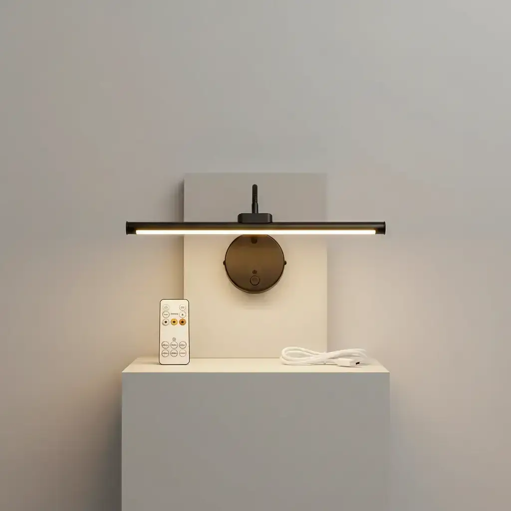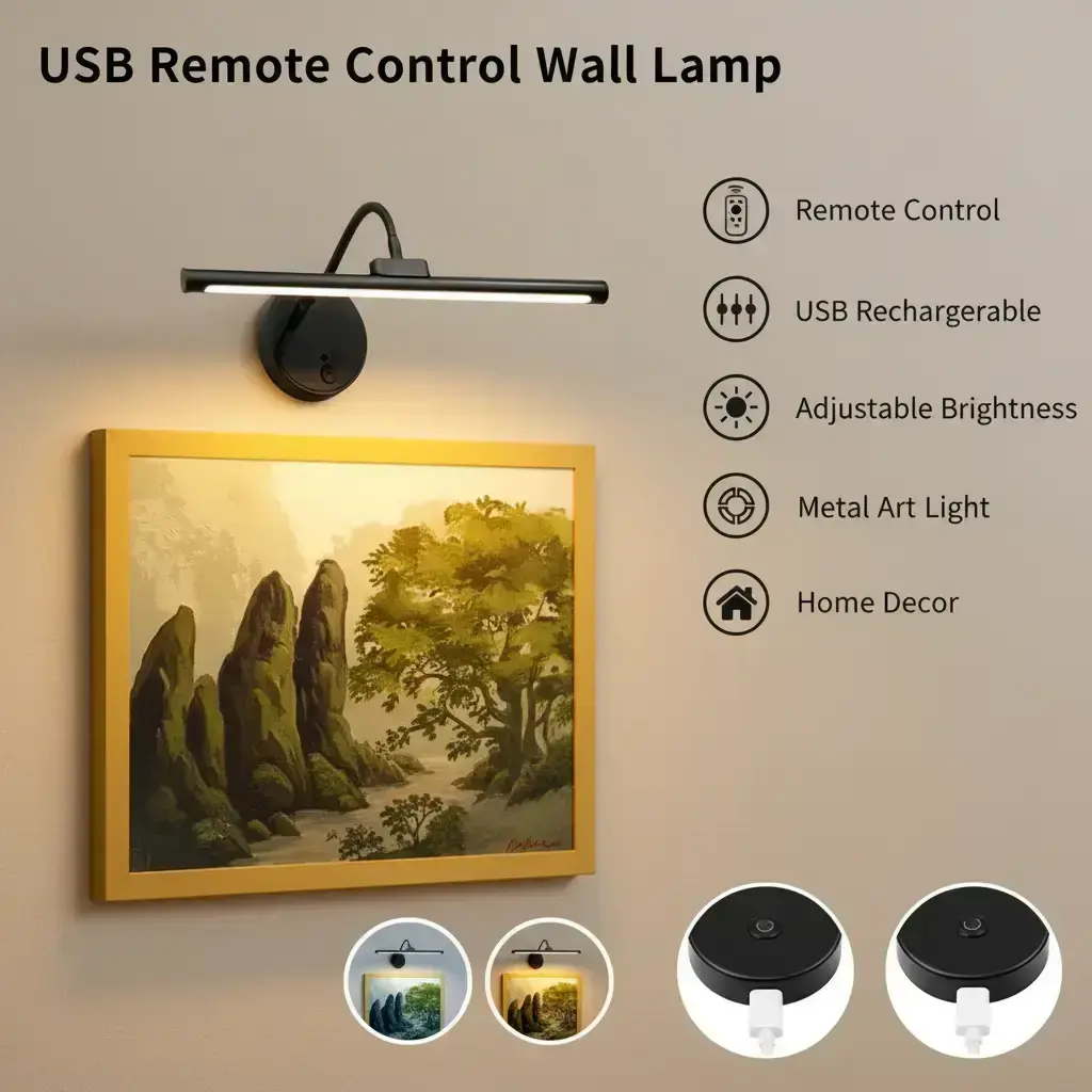 Remote-Controlled Picture Light, USB Rechargeable Wall Lamp, Adjustable Brightness and Timer Metal Art Light, Home Decor Light for Displaying Artwork on Walls and in Galleries