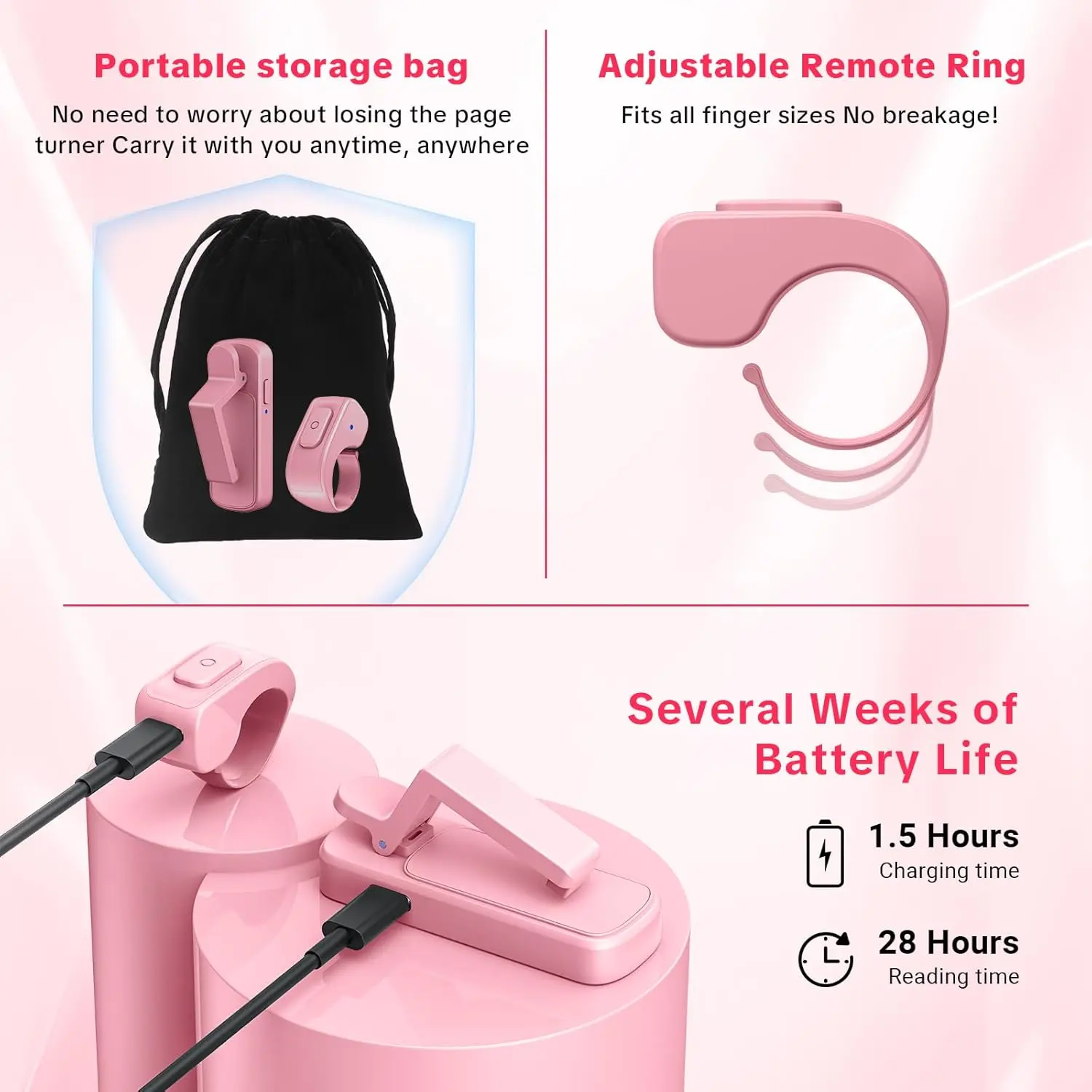 【Multi-Functional Remote & Long Life】More than just a page turner or kindle accessories! Doubles as a remote shutter for smartphones and cameras— for selfies, group photos, or videos. Fast Type-C takes only 1.5 hours and lasts for weeks of reading. Built-in power-saving mode ensures reliable performance anywhere you go