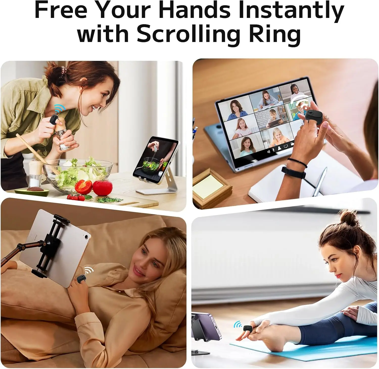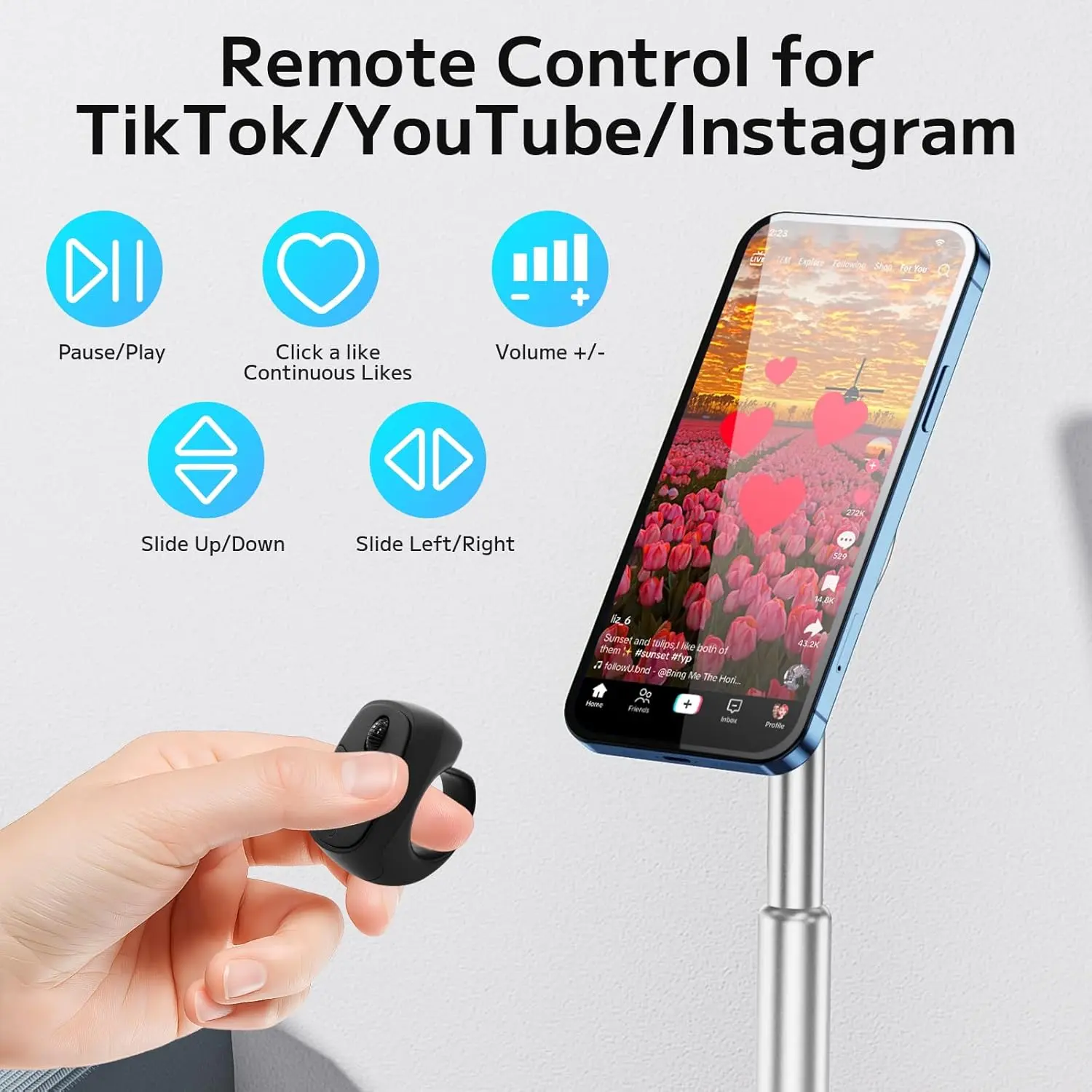 Bluetooth Scrolling Ring for TikTok: Enjoy a truly hands-free TikTok experience.Effortlessly scroll up and down, left and right, pause/play, like/continuously like, and adjust the volume-all without touching your phone screen.Experience smooth control for uninterrupted video watching