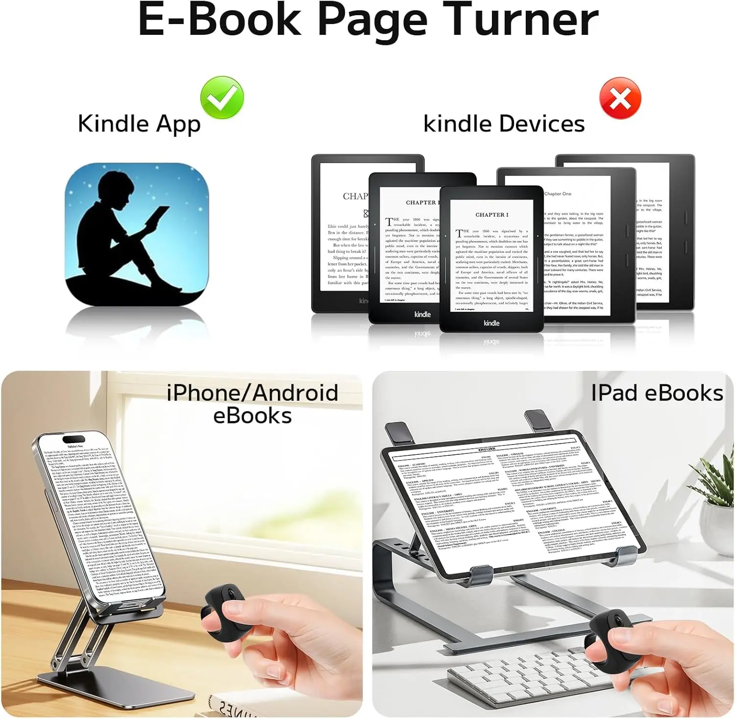 Remote Page Turner for Reading Apps:Enjoy a smooth reading experience with remote page-turning for iOS and Android e-book apps.Whether you're relaxing at home or on the go, simply press the remote ring to flip to the previous or next page without touching your screen.(Note: Not compatible with Kindle devices)