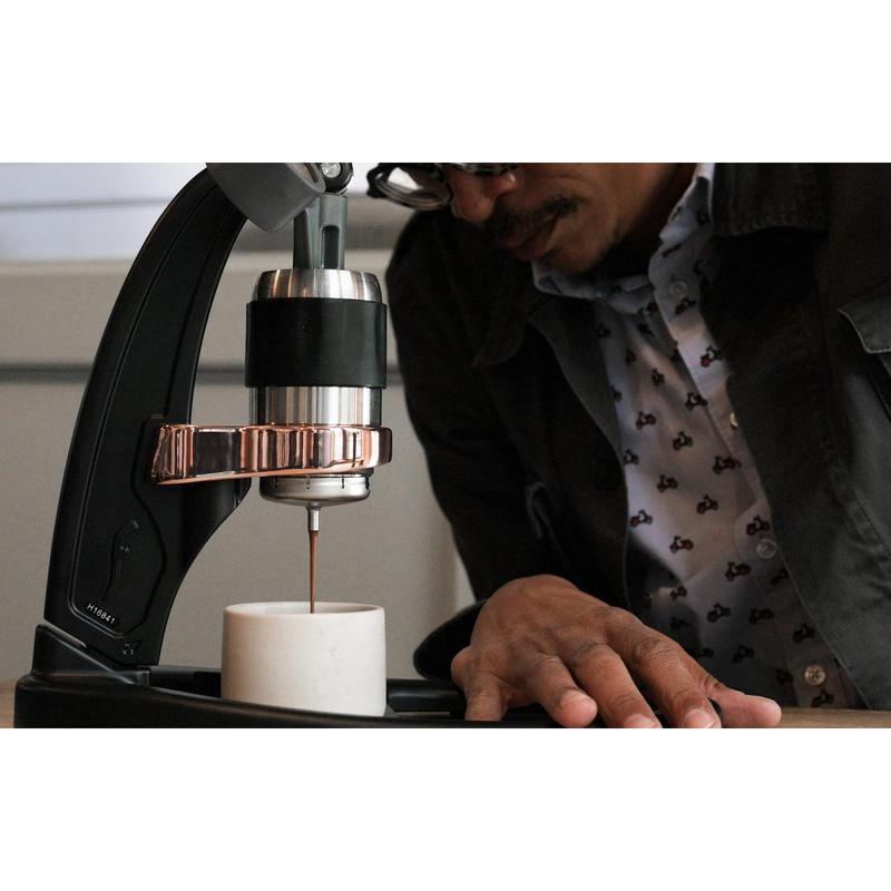 The removable stainless steel spout is perfect for those wishing to brew with minimal potential for sprays or mess while extracting their espresso. The spout is made of stainless steel and easily snaps on and off your PRO 2 portafilter.
